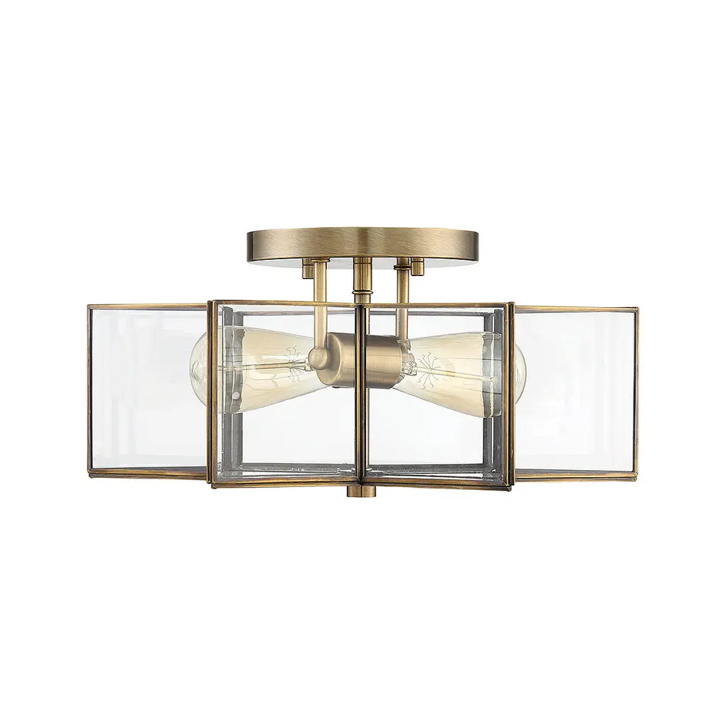 Modern 2 Light 16 Inch Natural Brass Semi-Flush Ceiling Light