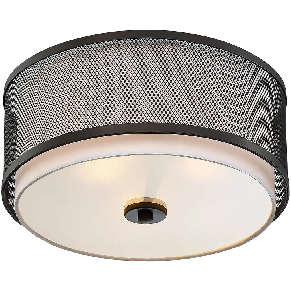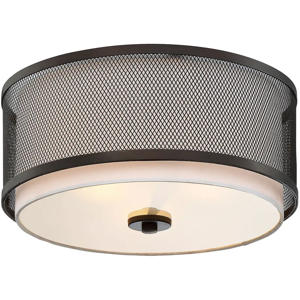 A mesh shade encircles the white fabric shade on this 3-light ceiling semi-flush mount, adding a big touch of texture to your home. Oil Rubbed Bronze finish. 6.25" in height and 14.75" in width.