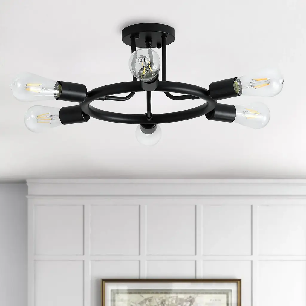 Modern 6-Light Unique Sputnik Semi Flush Mount Ceiling Lamp - Black