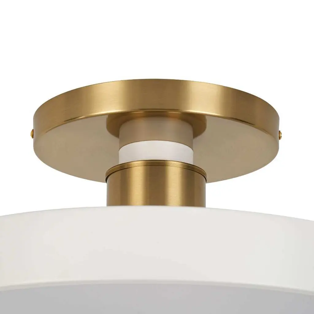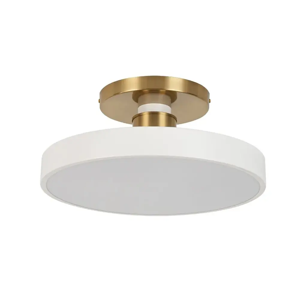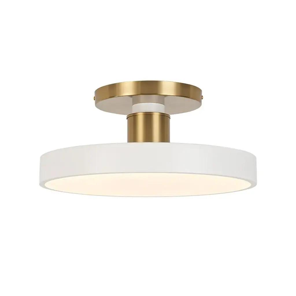 This LED semi flush ceiling light features a wide and low-profile round shade finished in dark blue that offers a touch of refined Scandinavian style. The chic brass canopy plays well with the blue tone to create a fresh vibe to this round ceiling light. The acrylic panel softens the LED lighting that comforts your eyes. Highly recommend mounting this blue round LED semi flush ceiling light to your living room, kitchen, dining room, entry, hallway, or bedroom for both modern chic style and task lighting.