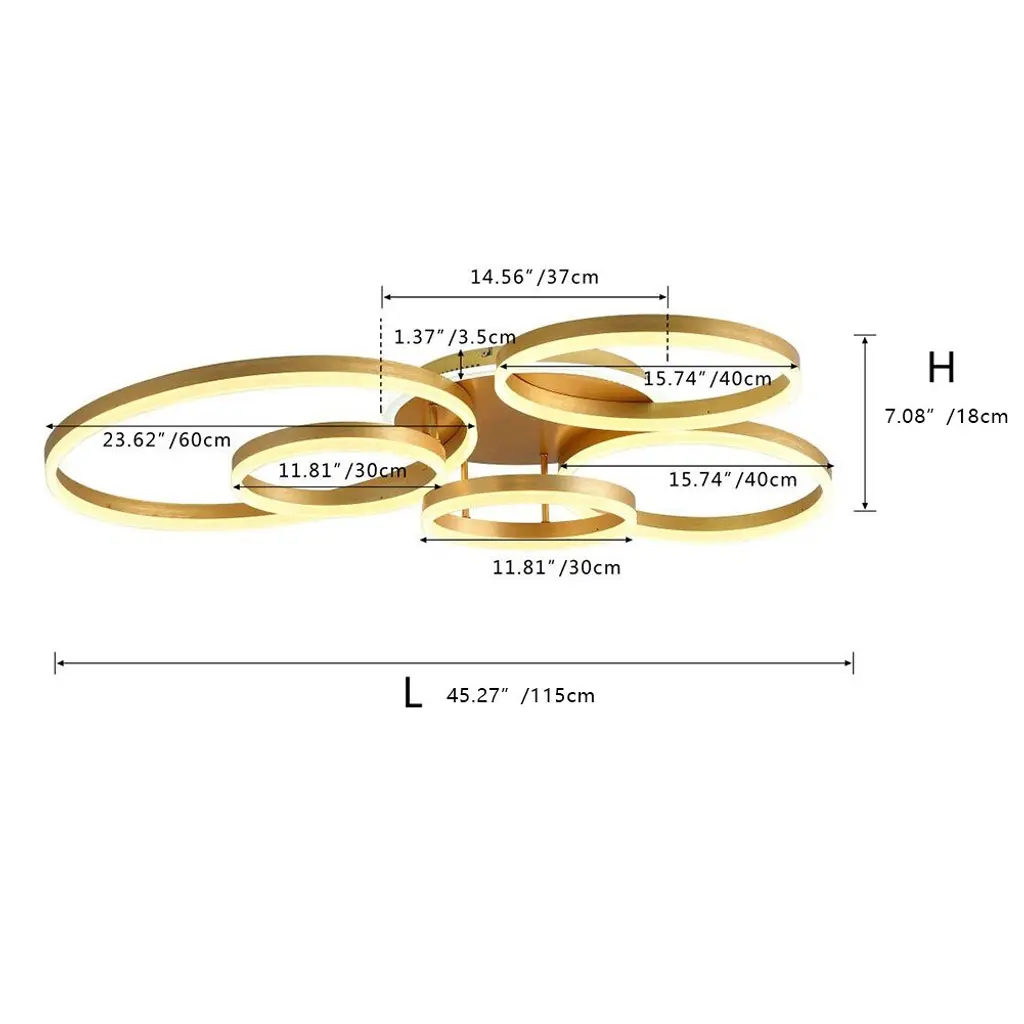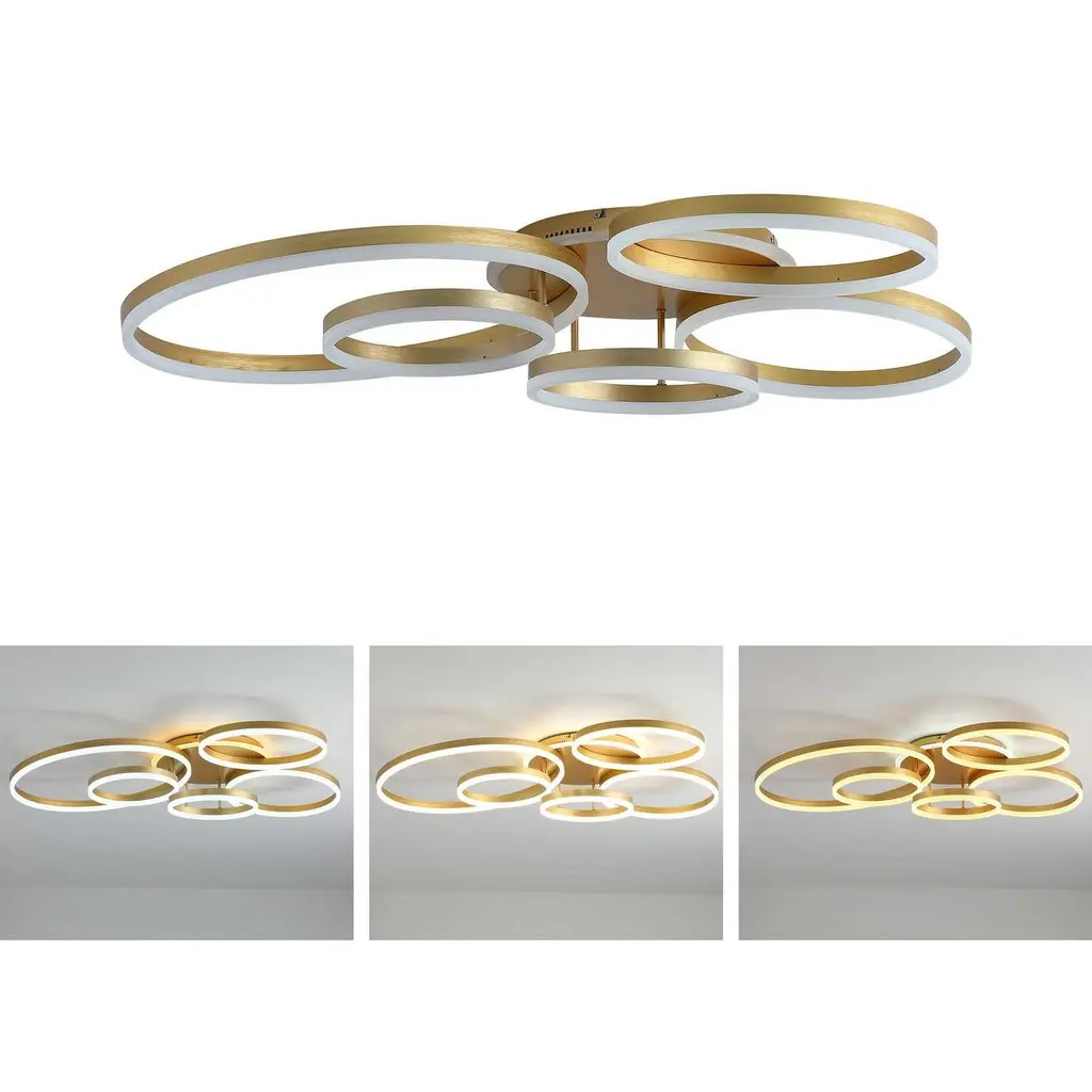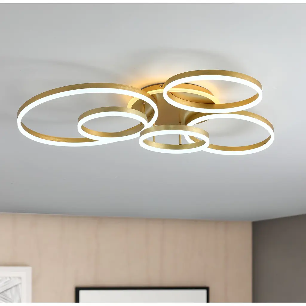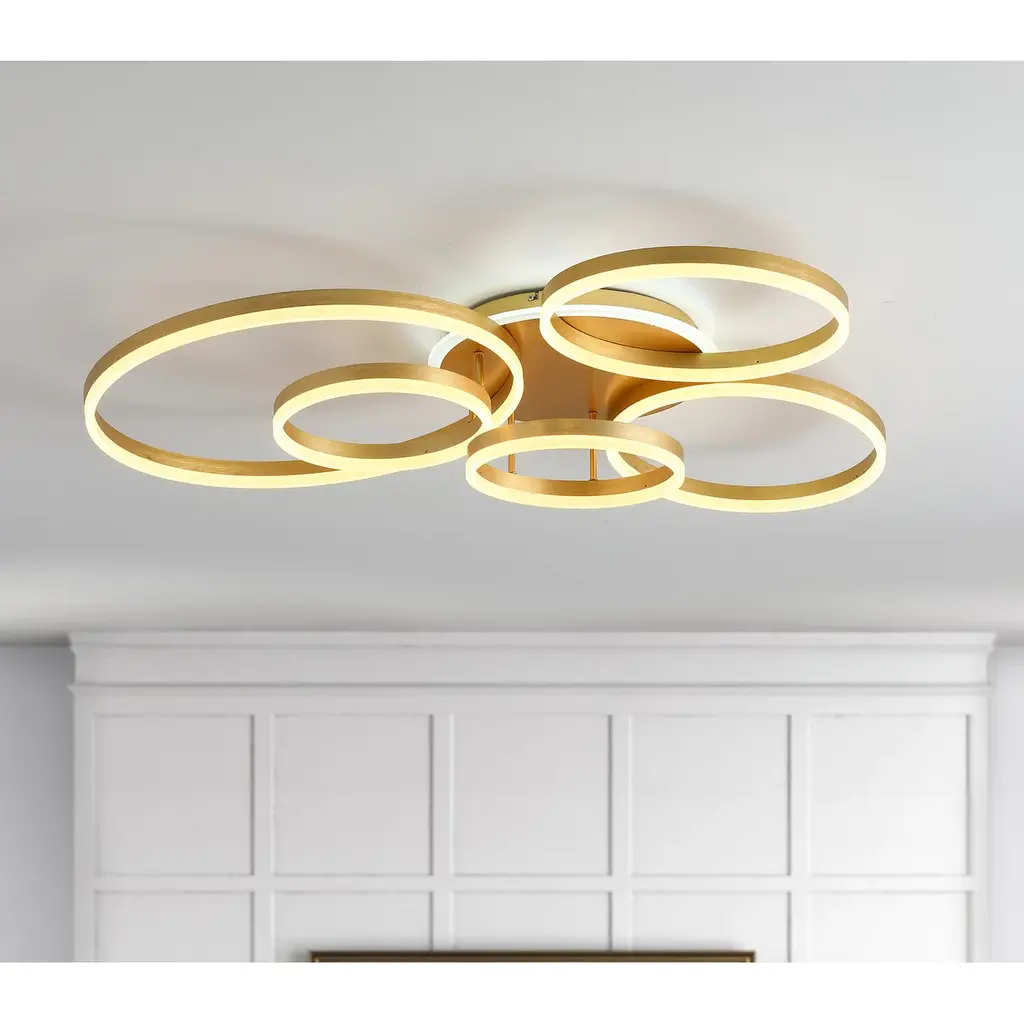 Modern Brushed Gold 5 Metal Rings Led Ceiling Light Fixture - Brushed Gold