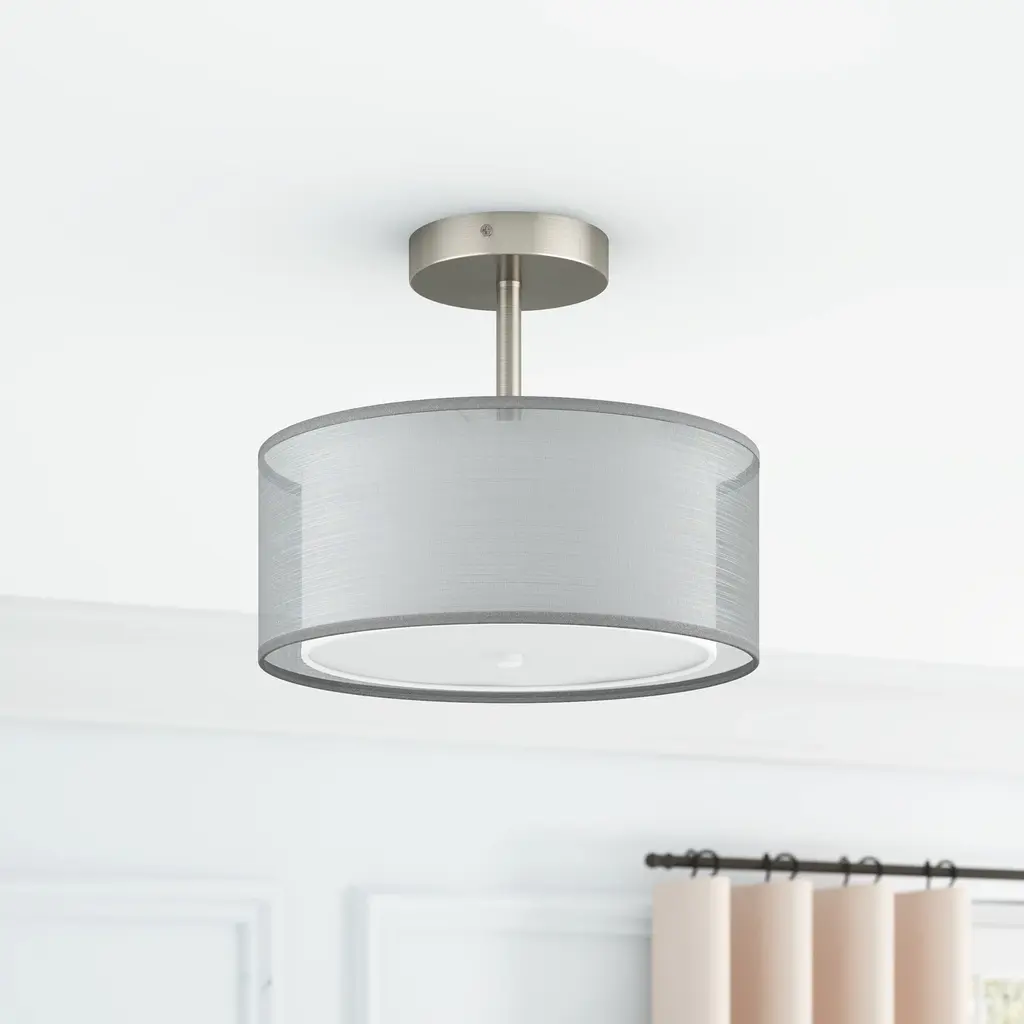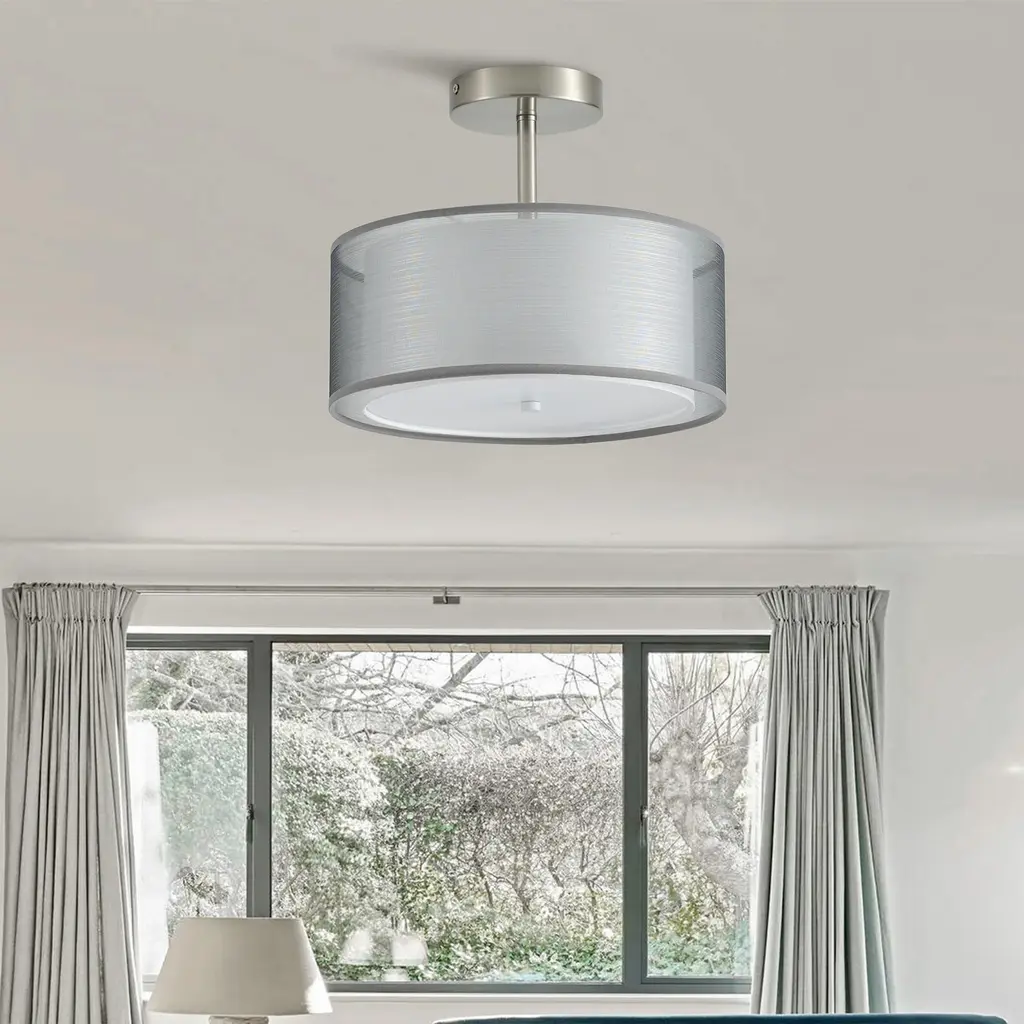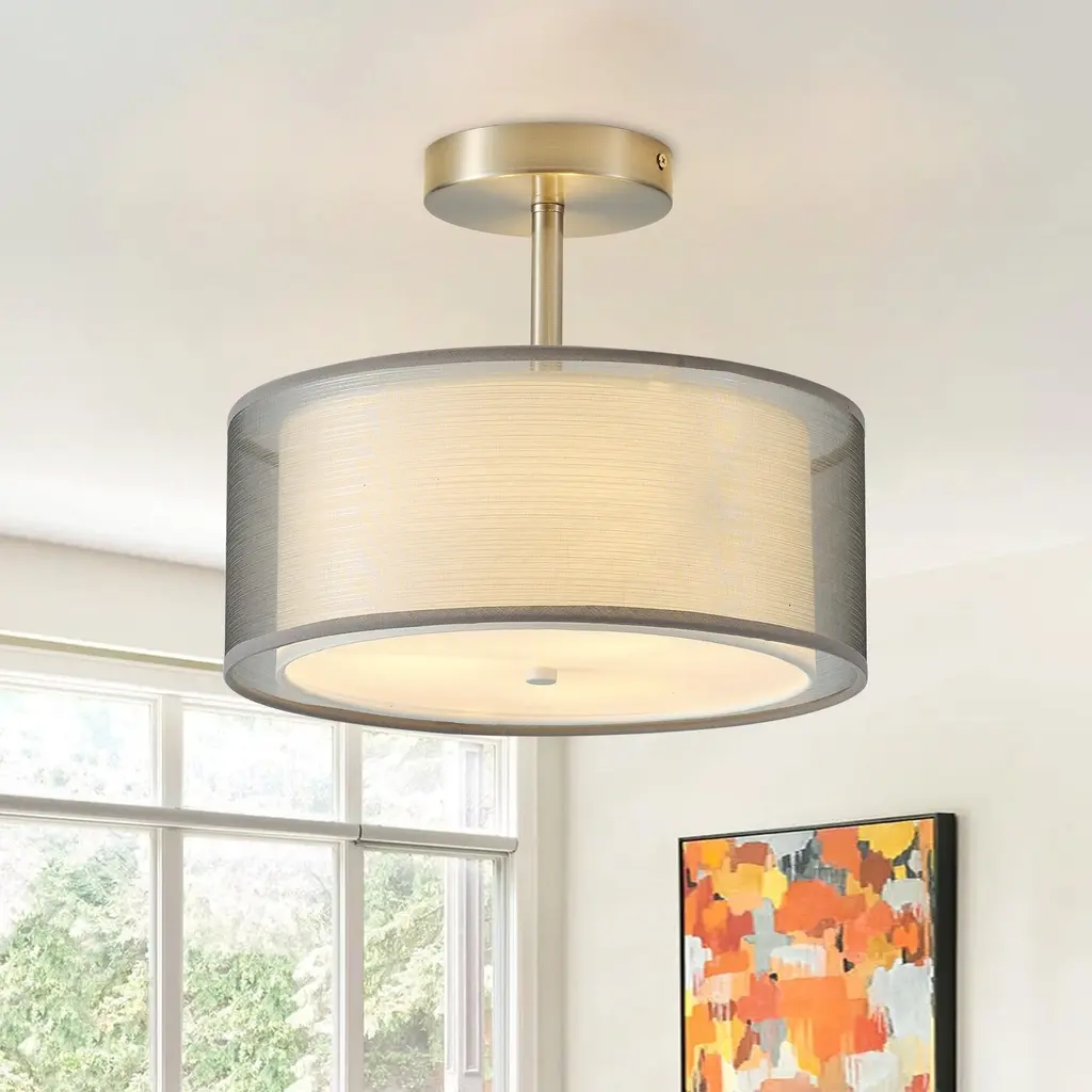 Specifications: Modern Style: The ceiling light fixture perfectly blends modern home and simple life. This drum-shaped lamp combines metal and fabric materials, and it features a double-layer design, which adds a sense of three-dimensionality and modern style to your home and also brings you comfortable lighting.Quality Assurance: High-quality metal and fabric were used to craft the ceiling light. All products in the factory have to undergo rigorous safety monitoring, to ensure quality and safety, which is beautiful, corrosion-resistant, and durable for a long time.Easy to Install: There is no need to worry about the installation difficulty, to achieve installation quickly, all installation hardware and installation instructions are included in the package for you. If you have any problems please feel free to contact us.ETL Listed & Bulb Requirement: ETL Listed for your safety. The ceiling light is a built-in standard E26 socket, I suggest using the dimmable E26*3 base bulbs (Max 9W, 120V), it could be a fully dimmable and compatible dimmer switch. Bulbs and dimmer switch not included.Suggested Scenes: The modern and simple design of the ceiling makes it easily fit with your home. It is perfect for decorating your dining room, living room, bedroom, kitchen island, bathroom, hotel, hallway, foyer, office, loft, cafe, and so on.