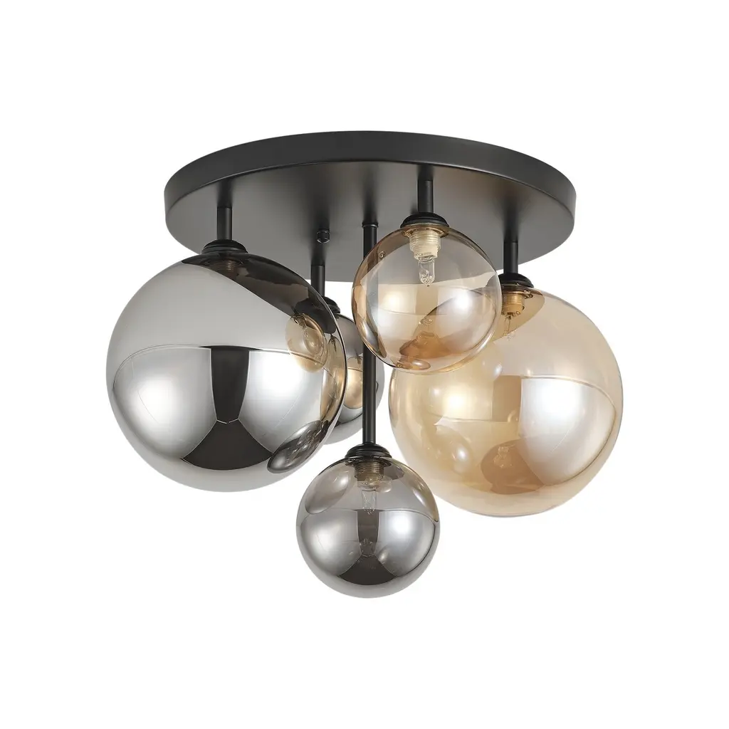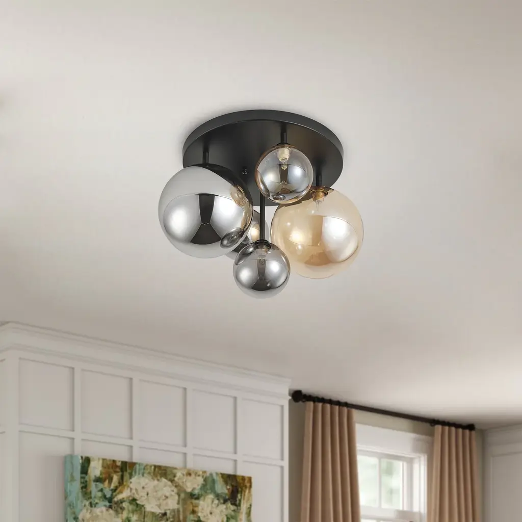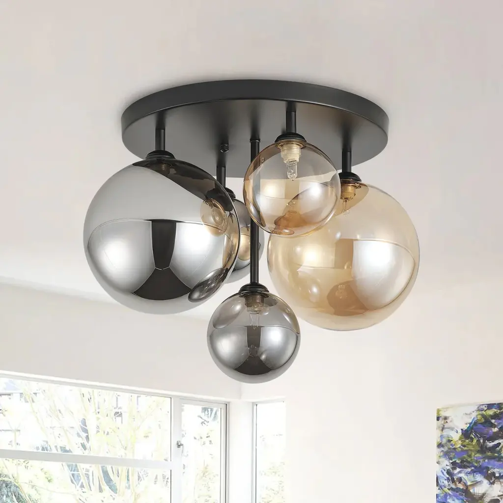 Modern Grey And Brown 5-Light Semi Flush Mount Ceiling Light With Globe Glass Lampshade - Black
