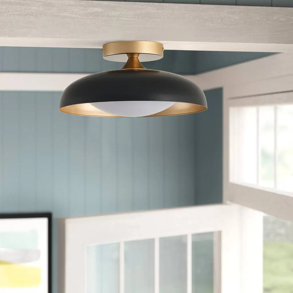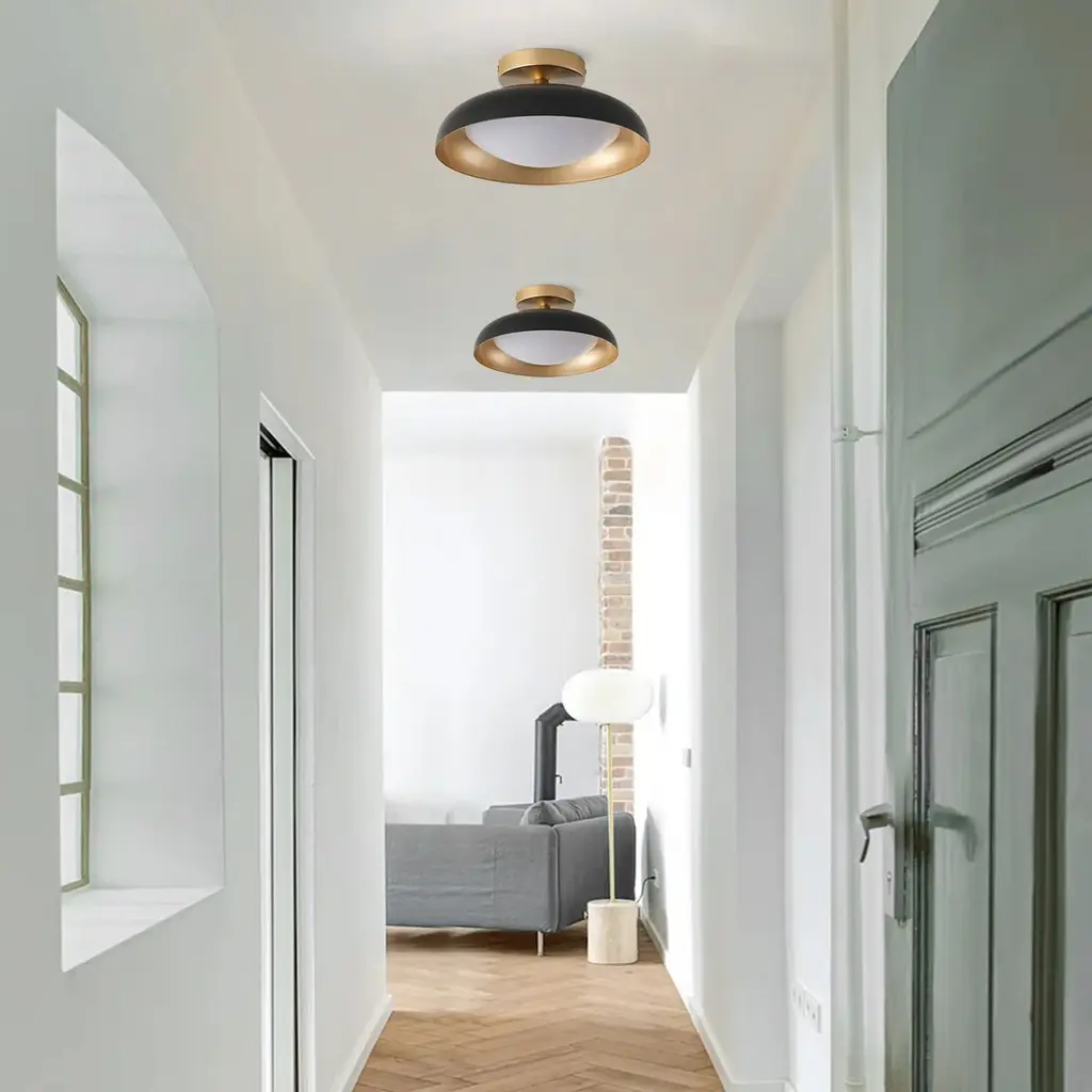 Modern Matte Black Semi Flush Mount Ceiling Light For Hallway Stairway Foyer - 11.41"