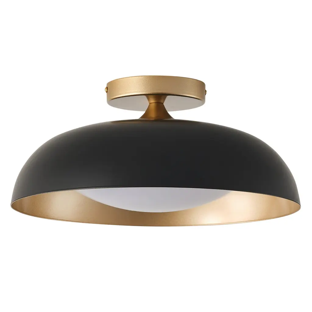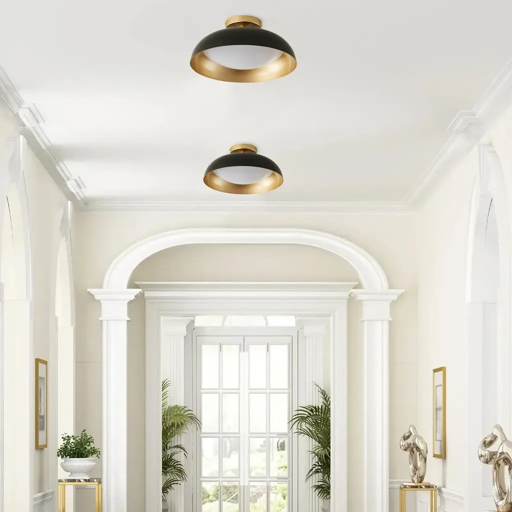 Modern Matte Black Semi Flush Mount Ceiling Light For Hallway Stairway Foyer - 14.96"