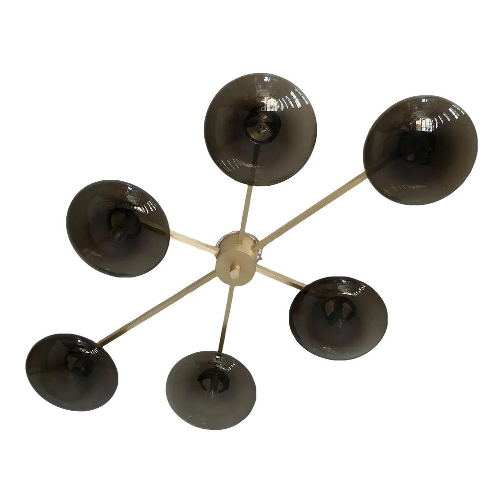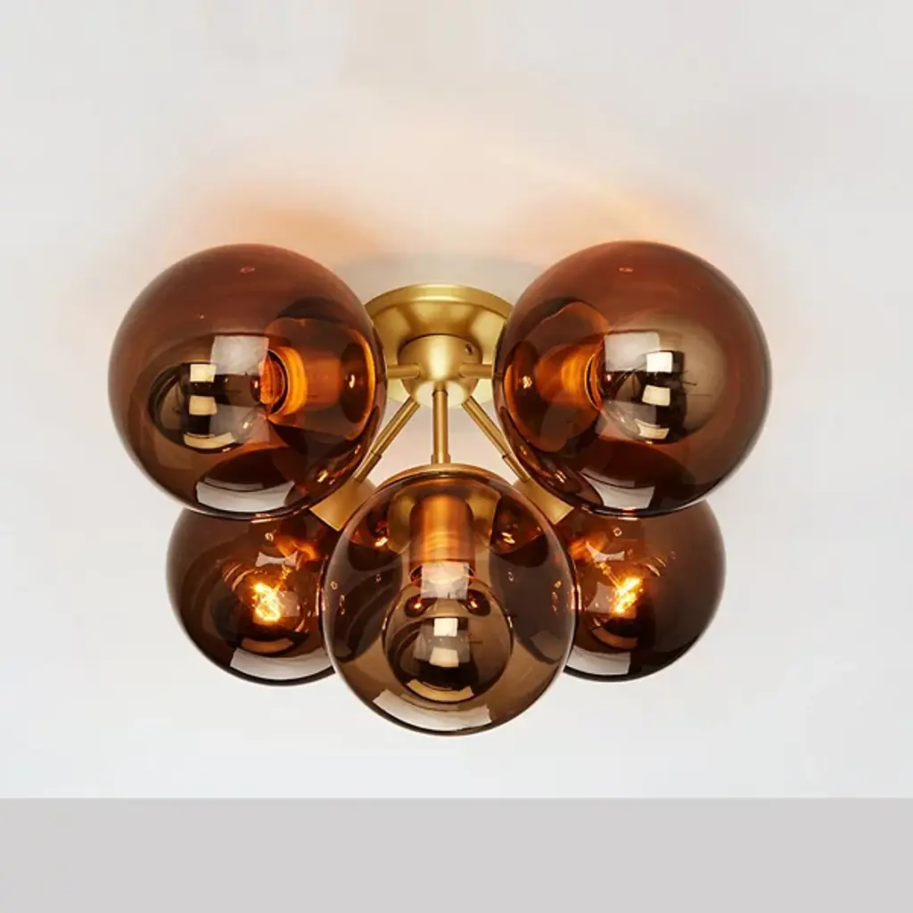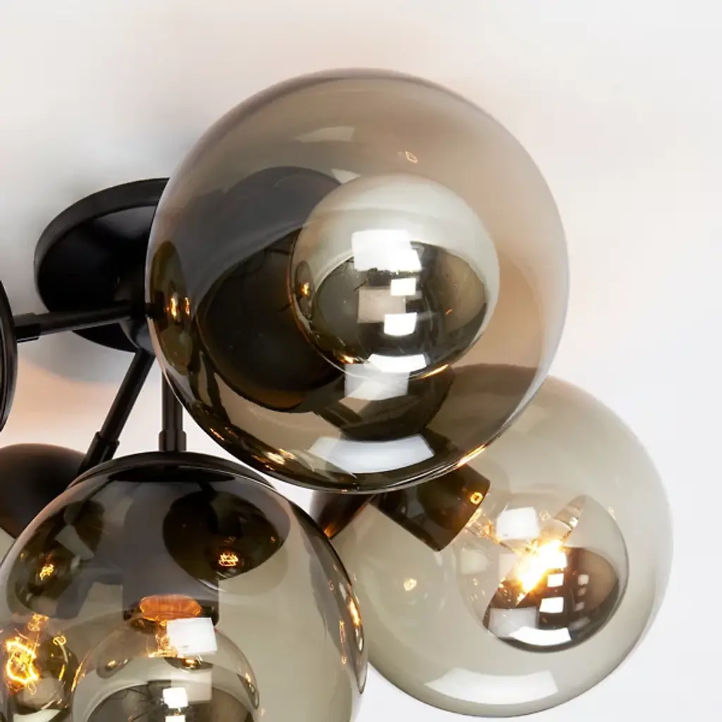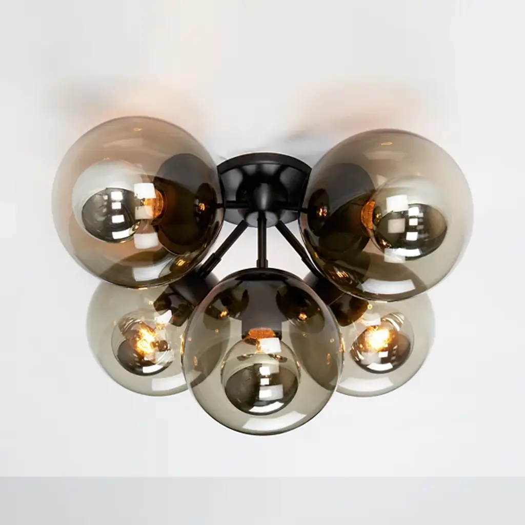 Bold and statement-worthy, the Modo Ceiling Light - 5 Globes becomes center of attention in any modern setting. Ideal for living and dining rooms, hallways, home offices, as well as hospitality spaces. Offered in black, bronze, polished nickel and brushed brass finishes with a choice of smoke, clear or cream glass globes. Provides diffused ambient illumination. Modo is dimmable with a standard Triac dimmer (sold separately). UL listed.