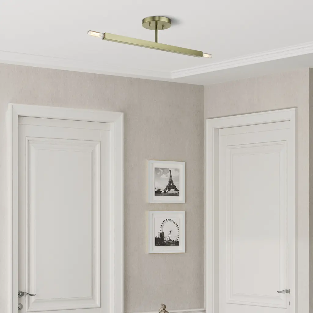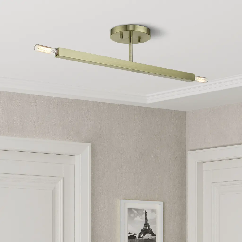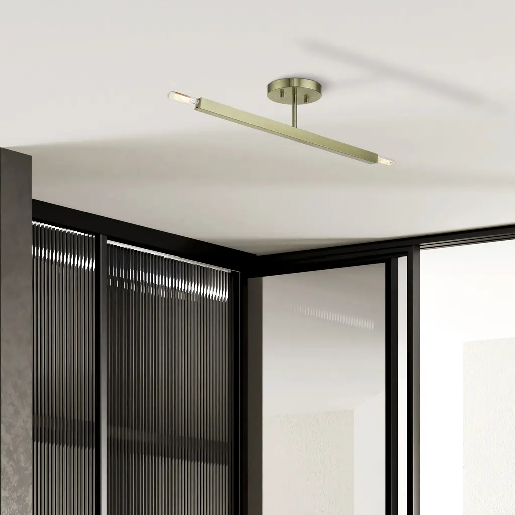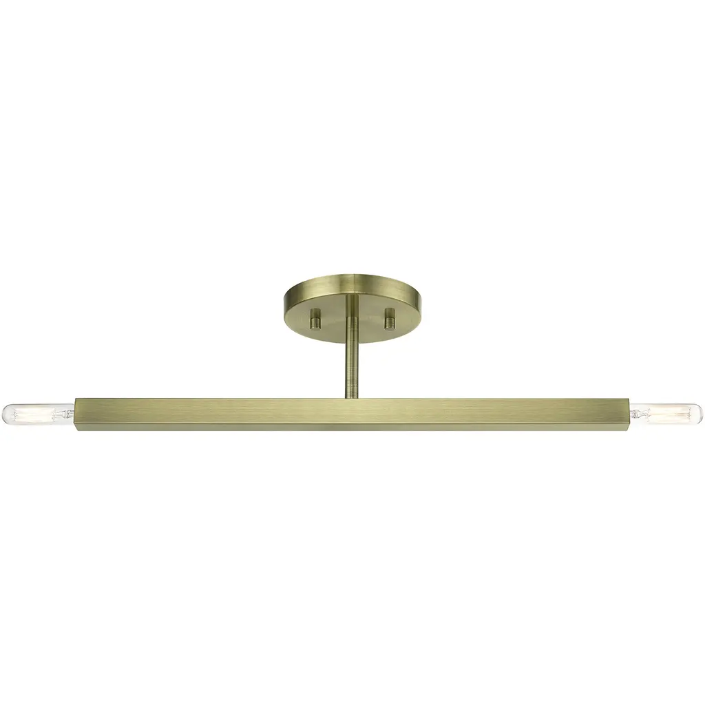 Monaco 2 Light 5.13 Inch Antique Brass Semi-Flush Ceiling Light