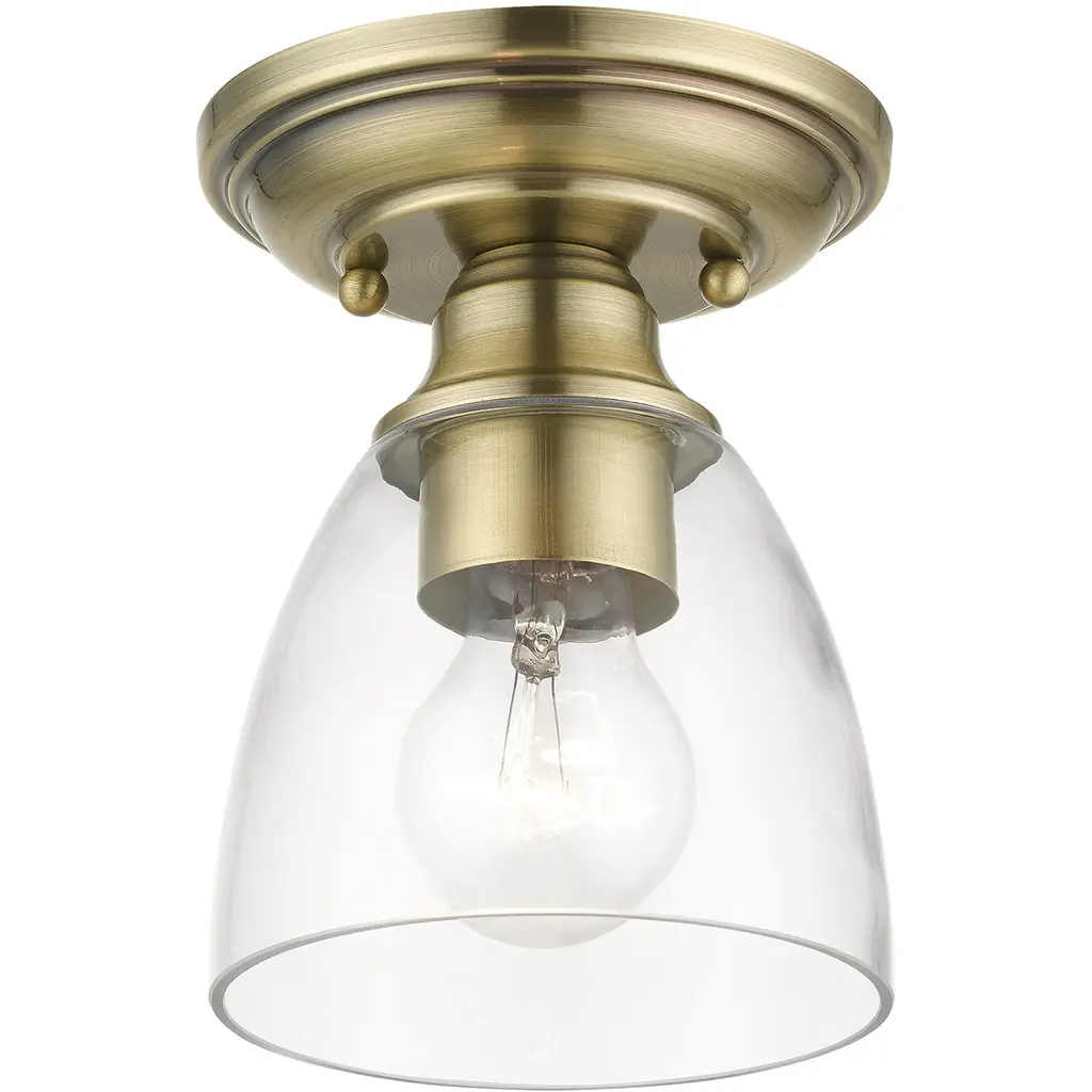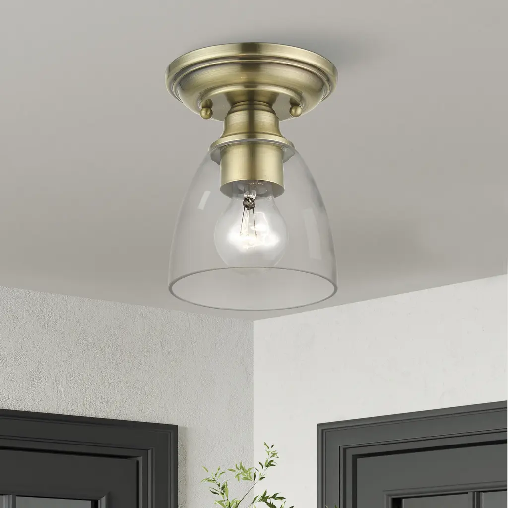 Montgomery 1 Light 5 Inch Antique Brass Semi-Flush Ceiling Light, Petite