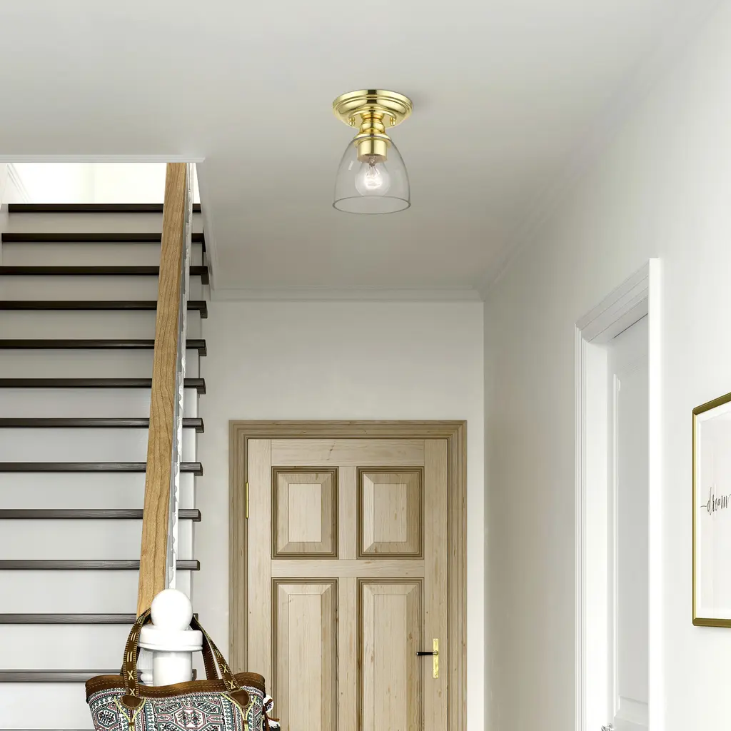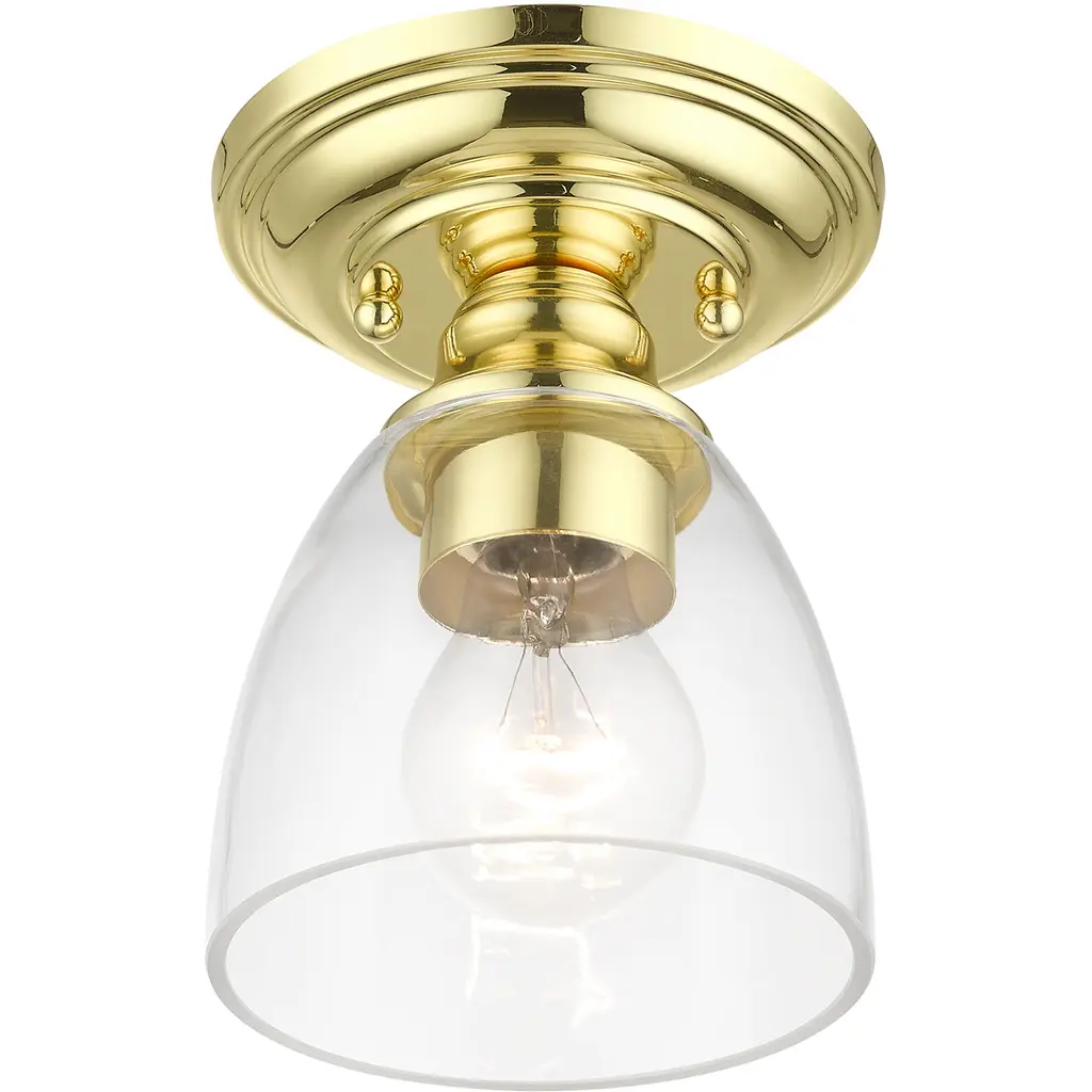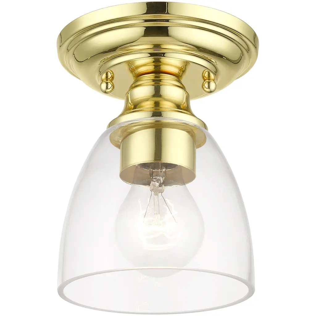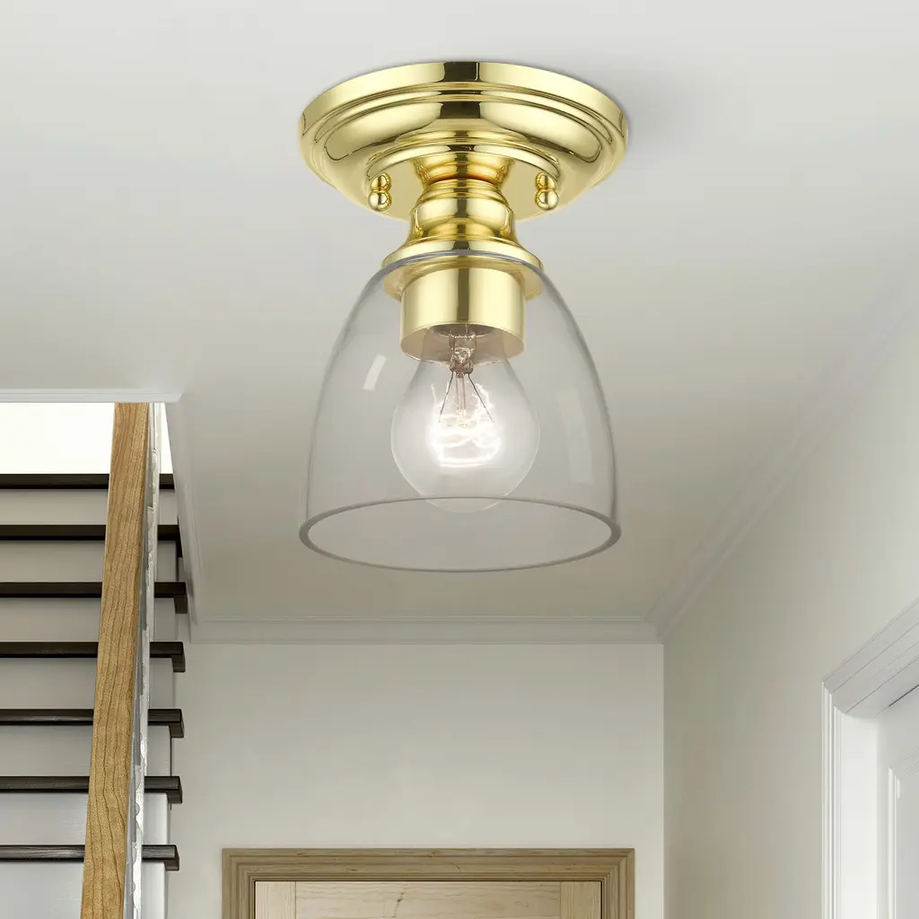 Montgomery 1 Light 5 Inch Polished Brass Semi-Flush Ceiling Light, Petite
