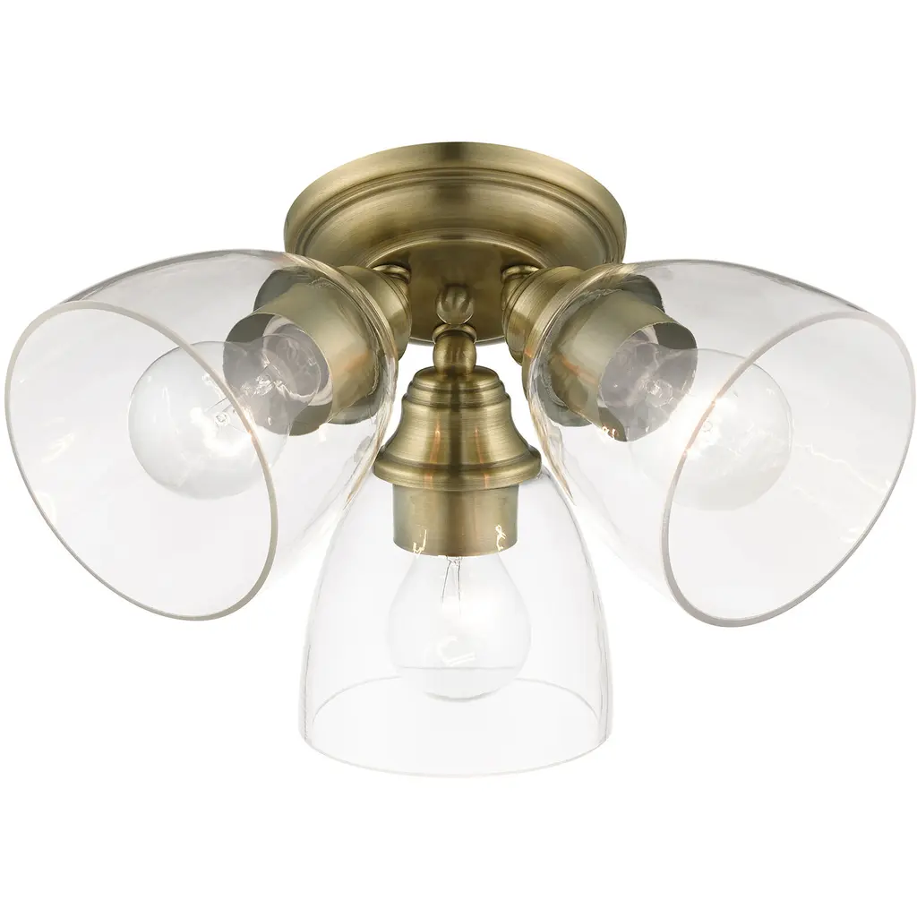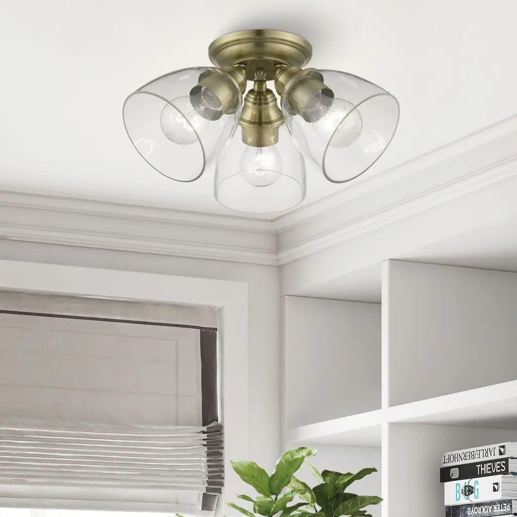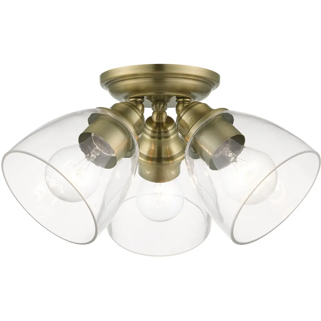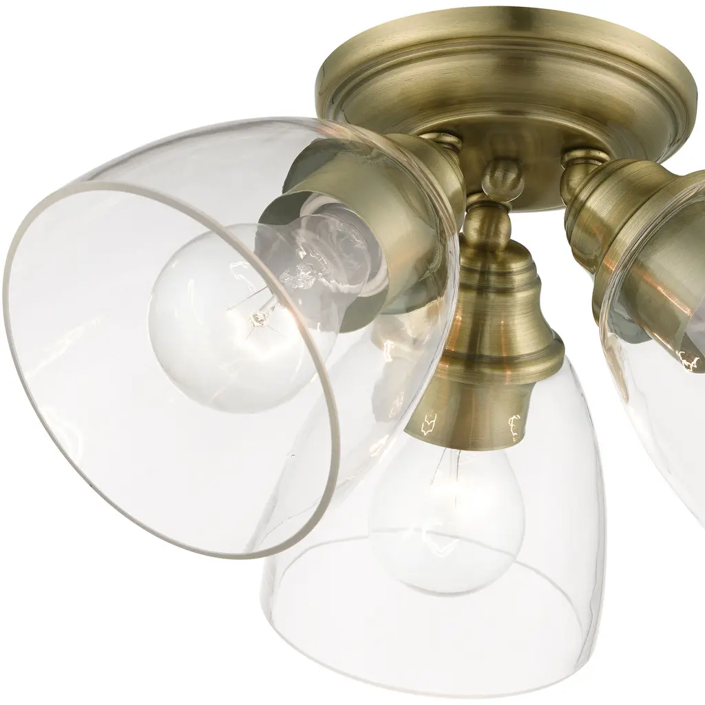 Montgomery 3 Light 14 Inch Antique Brass Semi-Flush Ceiling Light