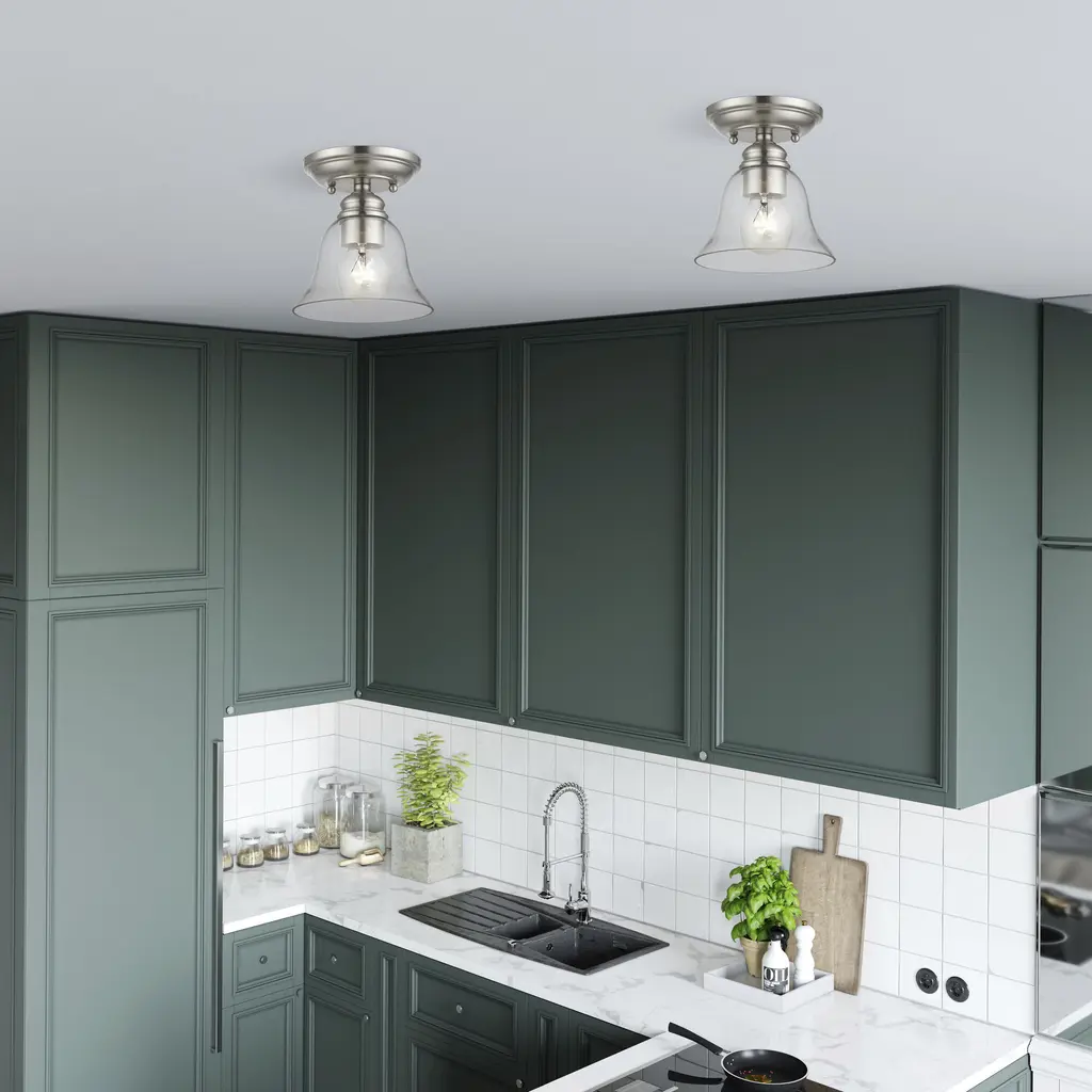 Moreland 1 Light 6 Inch Brushed Nickel Small Semi-Flush Ceiling Light, Small