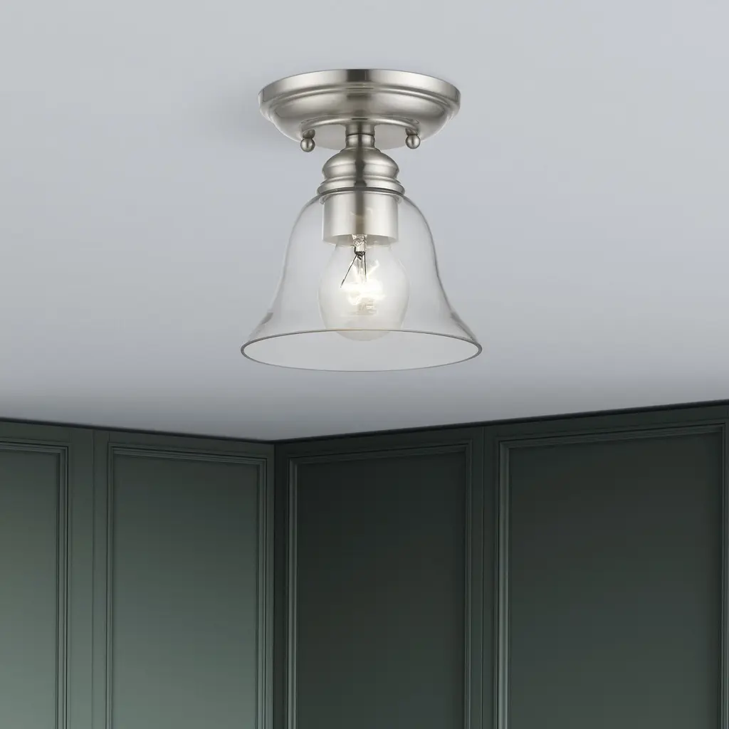 Moreland 1 Light 6 Inch Brushed Nickel Small Semi-Flush Ceiling Light, Small