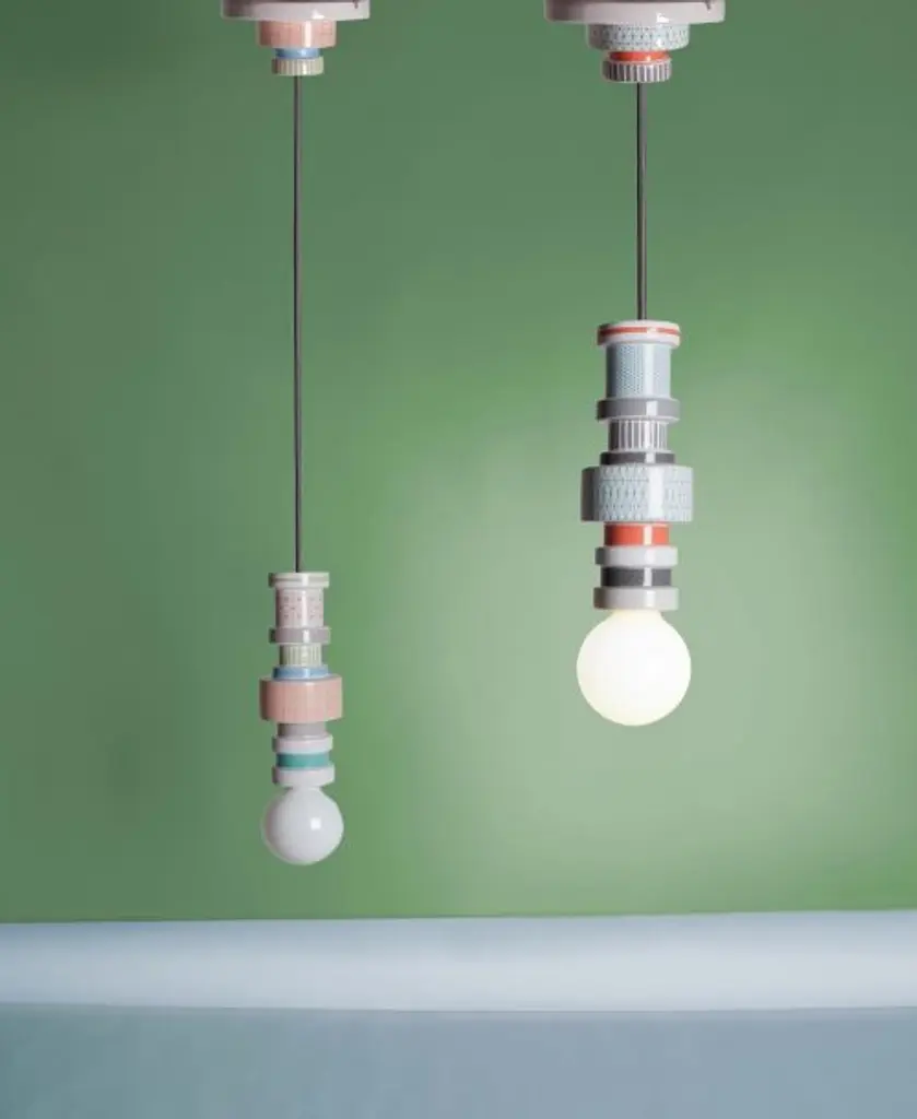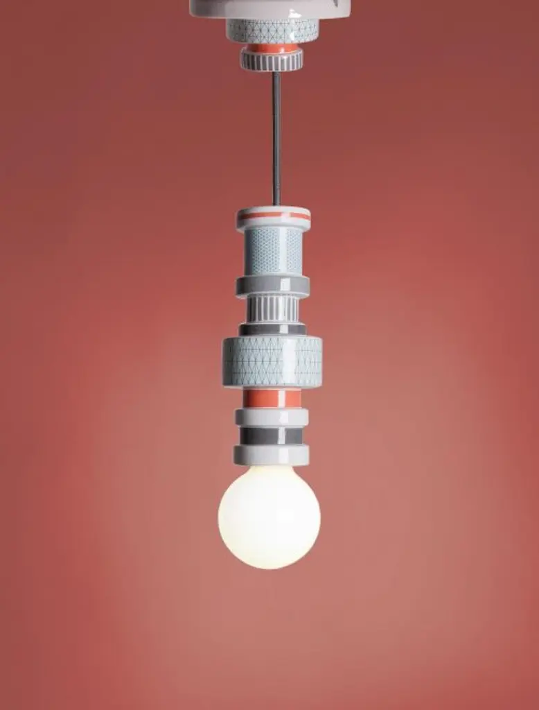 The Moresque lighting collection includes pendant and table or desk lamps that channel historic Moorish imagery with a contemporary twist. Inspired by architecture such as the Alhambra Palace of Granada, Spain, the arabesque designs are irregularly shaped and banded with colorful glazes and patterns. The echo of Andalusia is modernized by the simple black cord and exposed bulb setup, making these lamps the perfect white light diffuser for a home or office today.