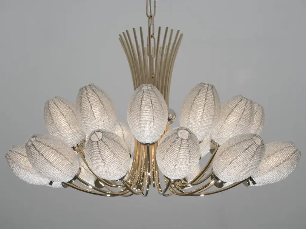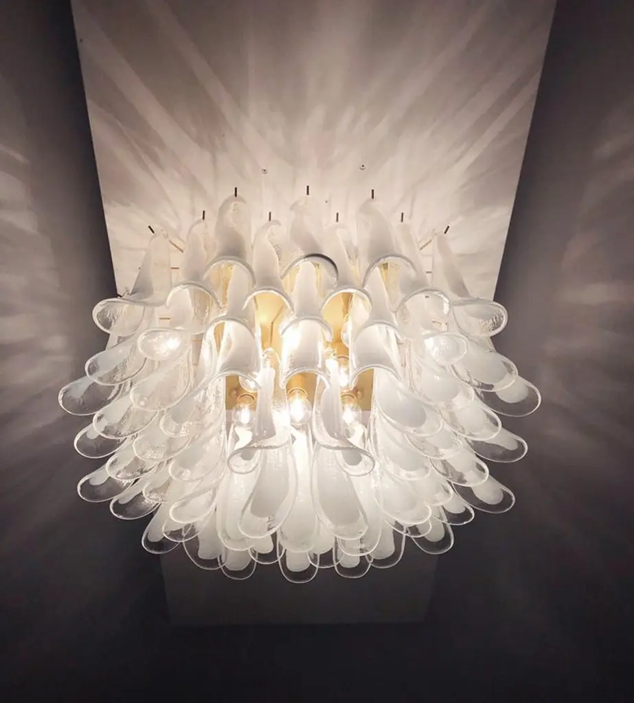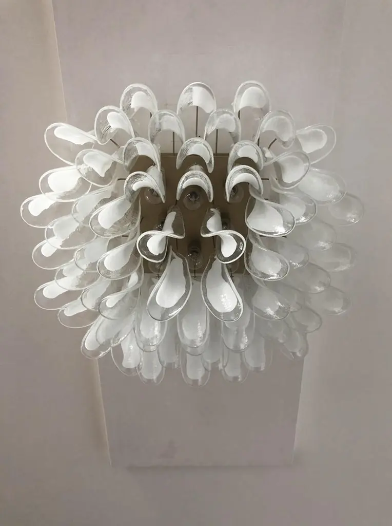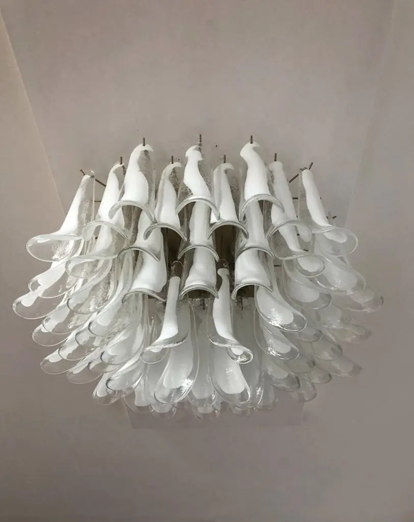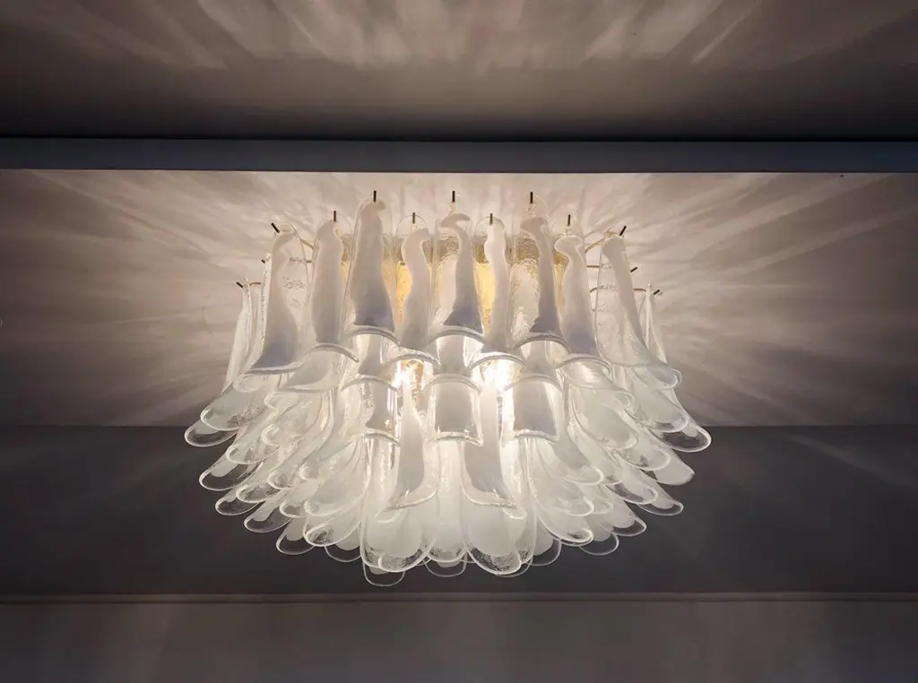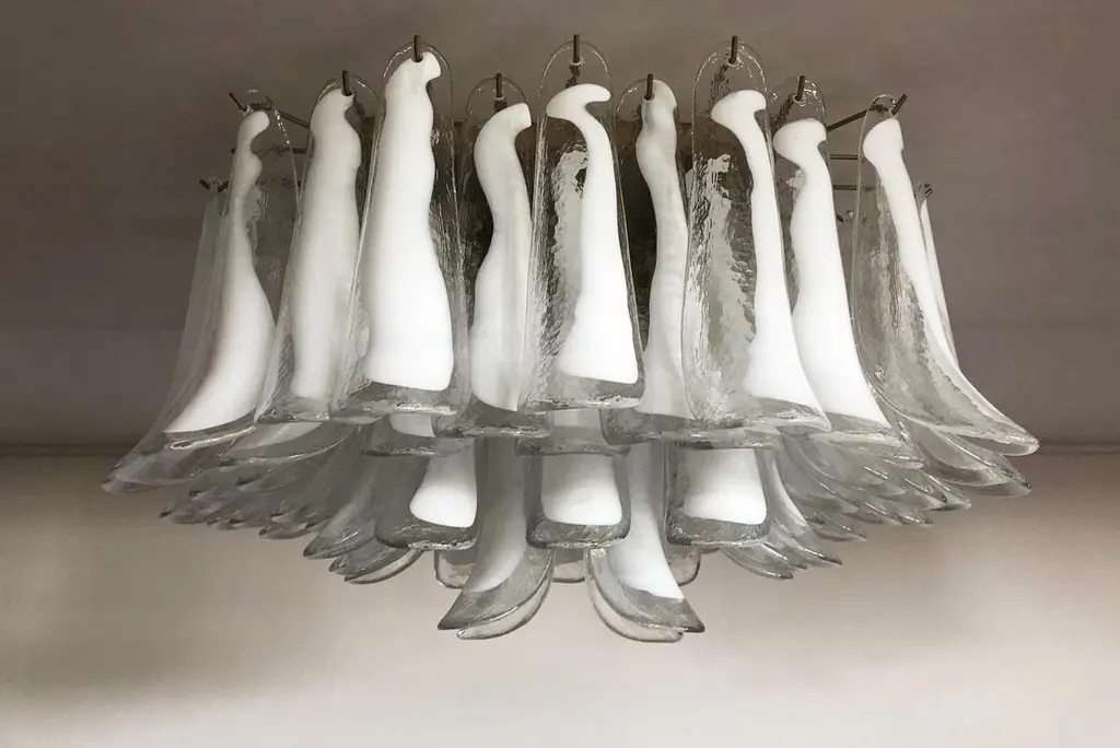 Murano Ceiling Lamp - 64 White Lattimo Glass Petal