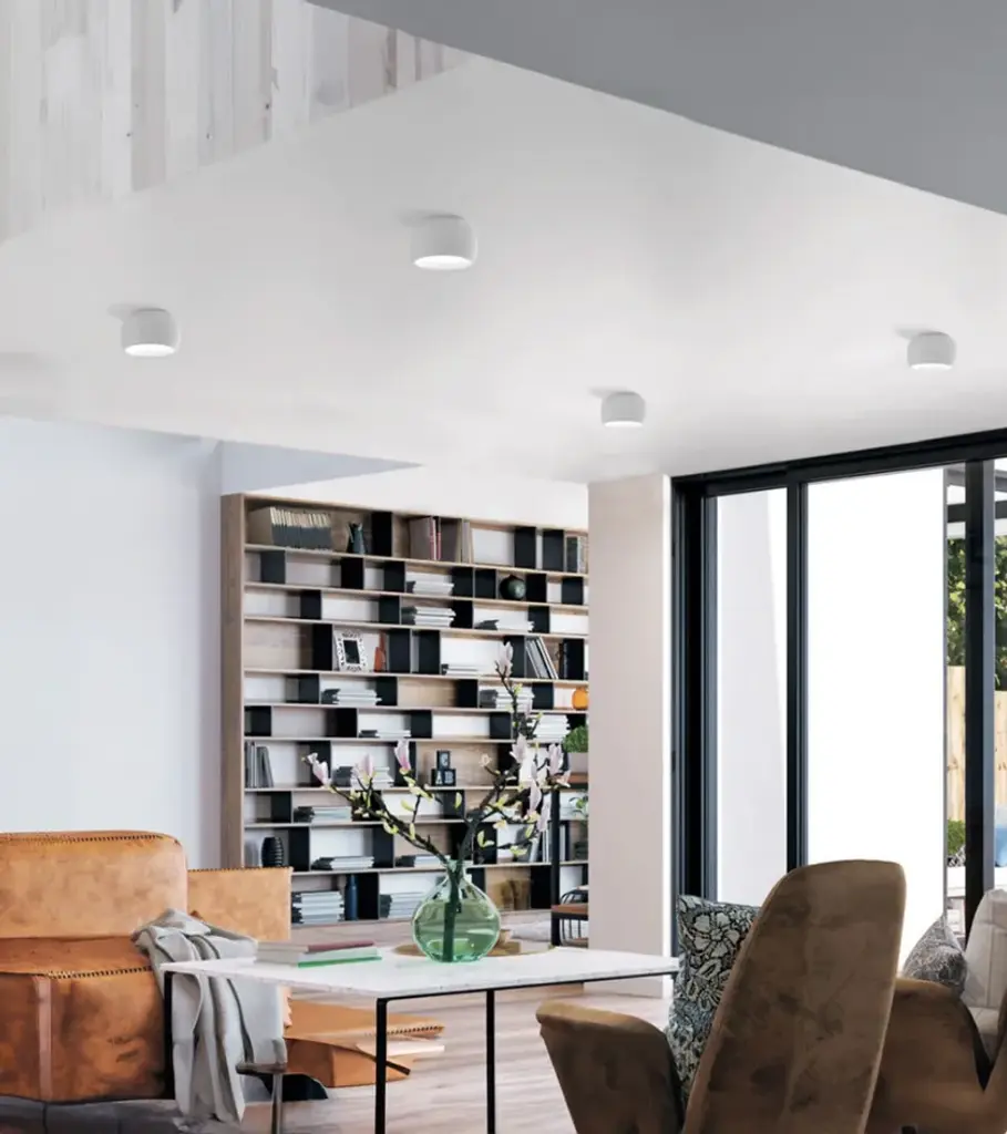 Mysia is a plaster ceiling lamp. Available in White or Quartz Gray (RAL7039). Equipped with GX53 lamp holder.