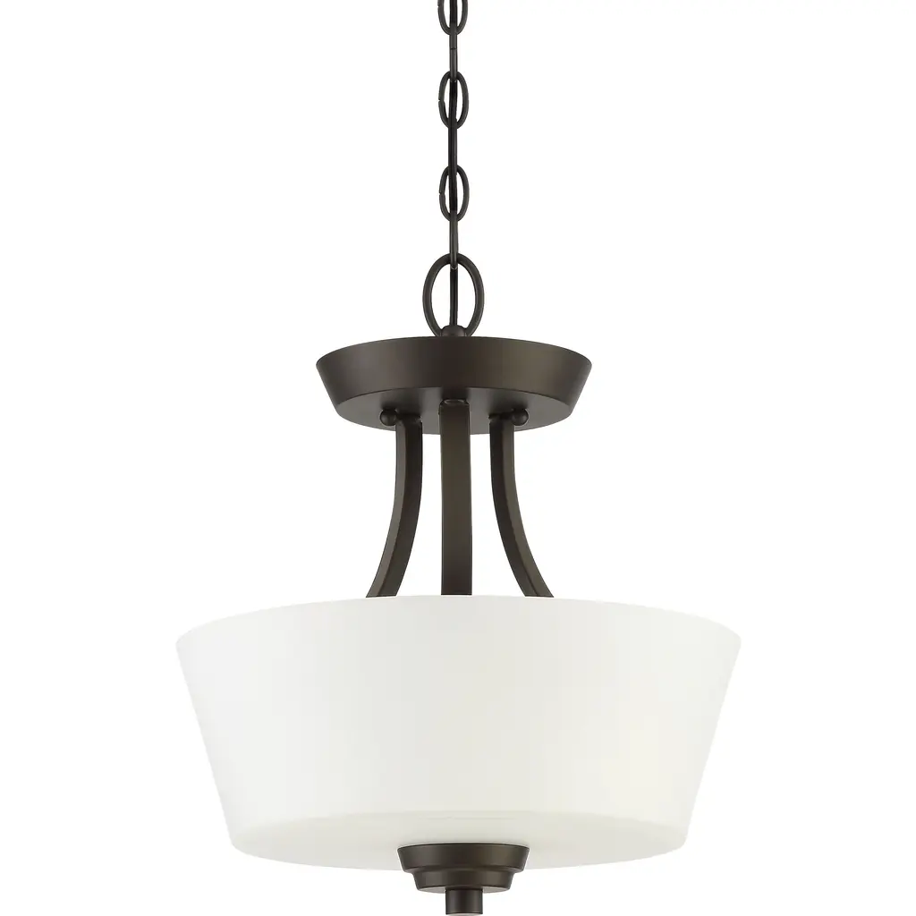 Neighborhood Grace 2 Light 13 Inch Espresso Convertible Semi Flush Ceiling Light In White Frosted Glass, Convertible