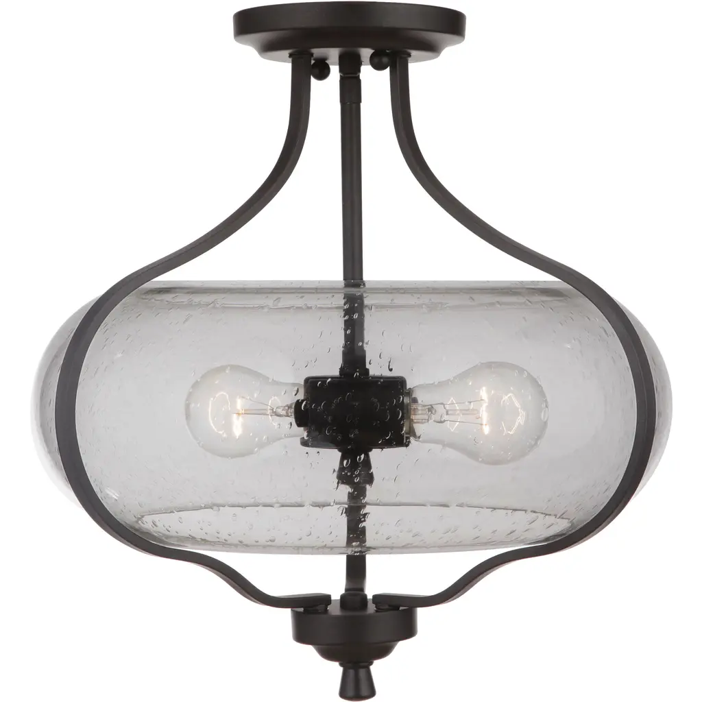 Neighborhood Serene 2 Light 15 Inch Espresso Semi Flush Ceiling Light In Clear Seeded, Neighborhood Collection