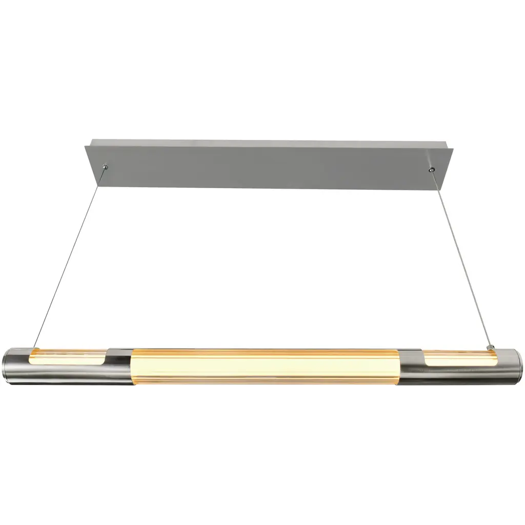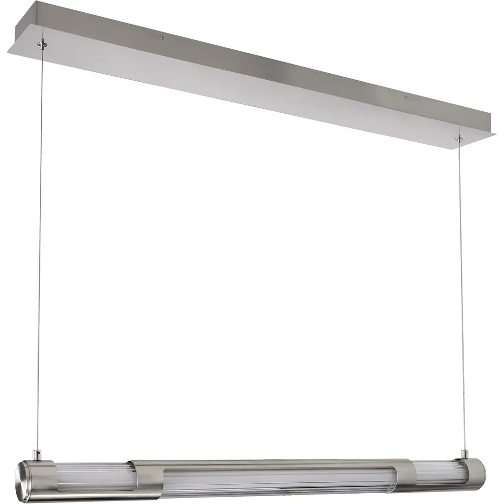 The Neva 36-Inch Integrated LED Chandelier is all about clean lines, modern vibes, and sleek performance. With a sleek satin nickel finish and a tubular design accented by ribbed detailing, this fixture delivers soft, even light perfect for kitchens, dining rooms, or offices. The suspended linear form makes a bold visual statement while the integrated LED ensures energy-efficient brightness with minimal maintenance.