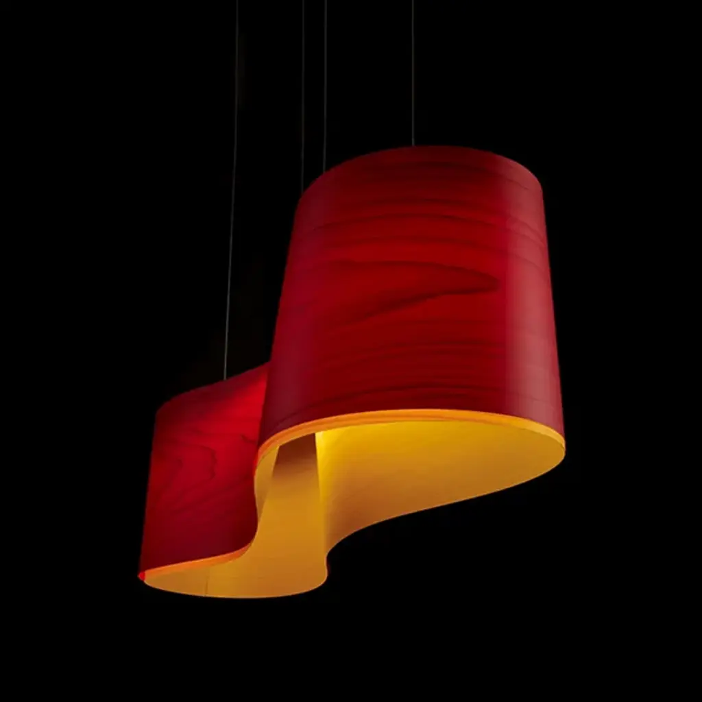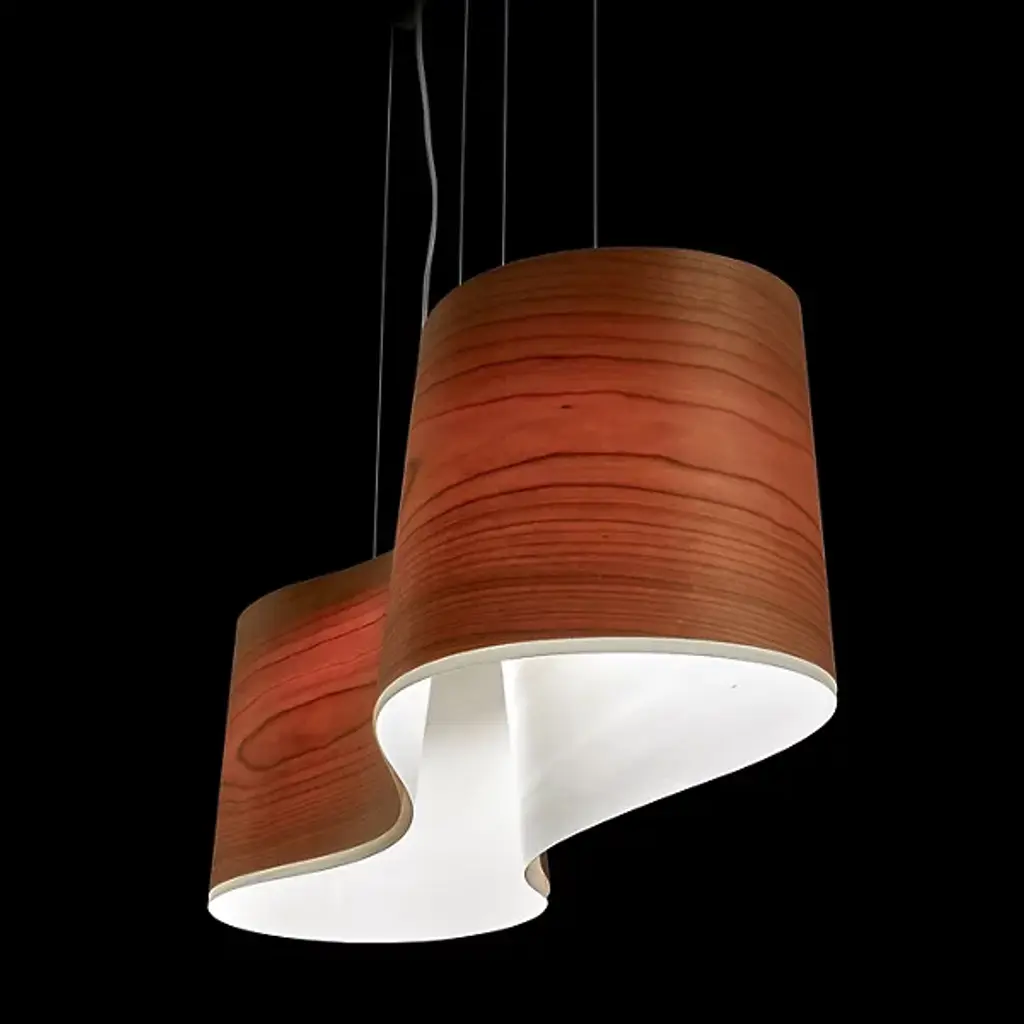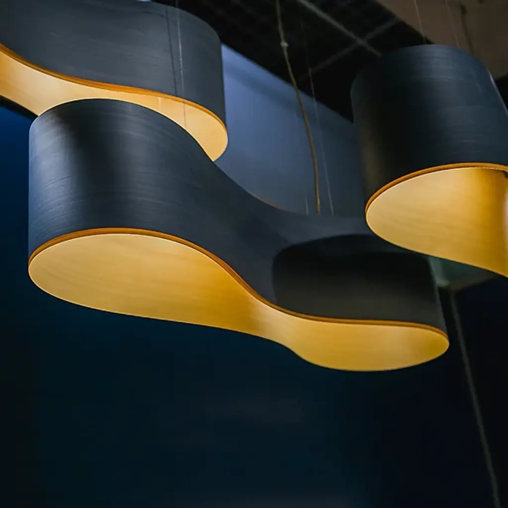 The LZF New Wave S Linear Suspension is a meandering band of wooden veneers, lending a more naturalistic approach to linear designs that can often be too stark or minimal. Two strips of wood are fitted together to create the shapely silhouette, finished on the interior. The interior shade color picks up the light remarkably well, creating a glowing interior that provides ample down lighting as well.