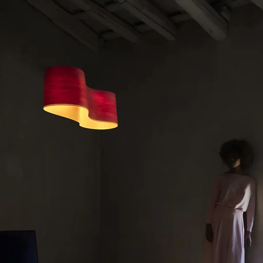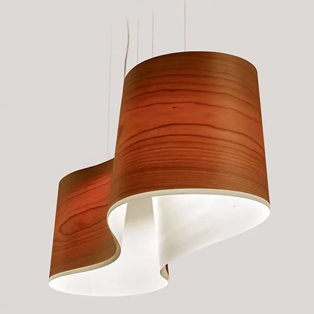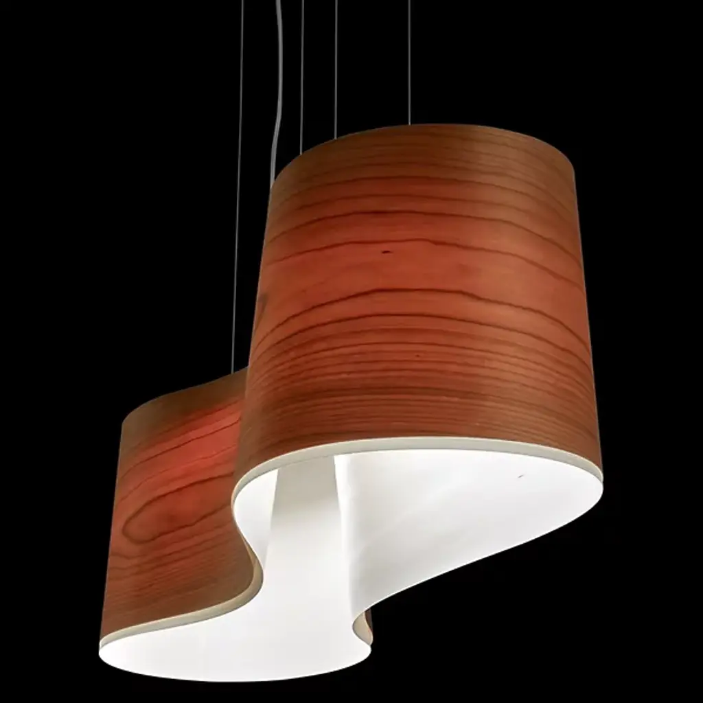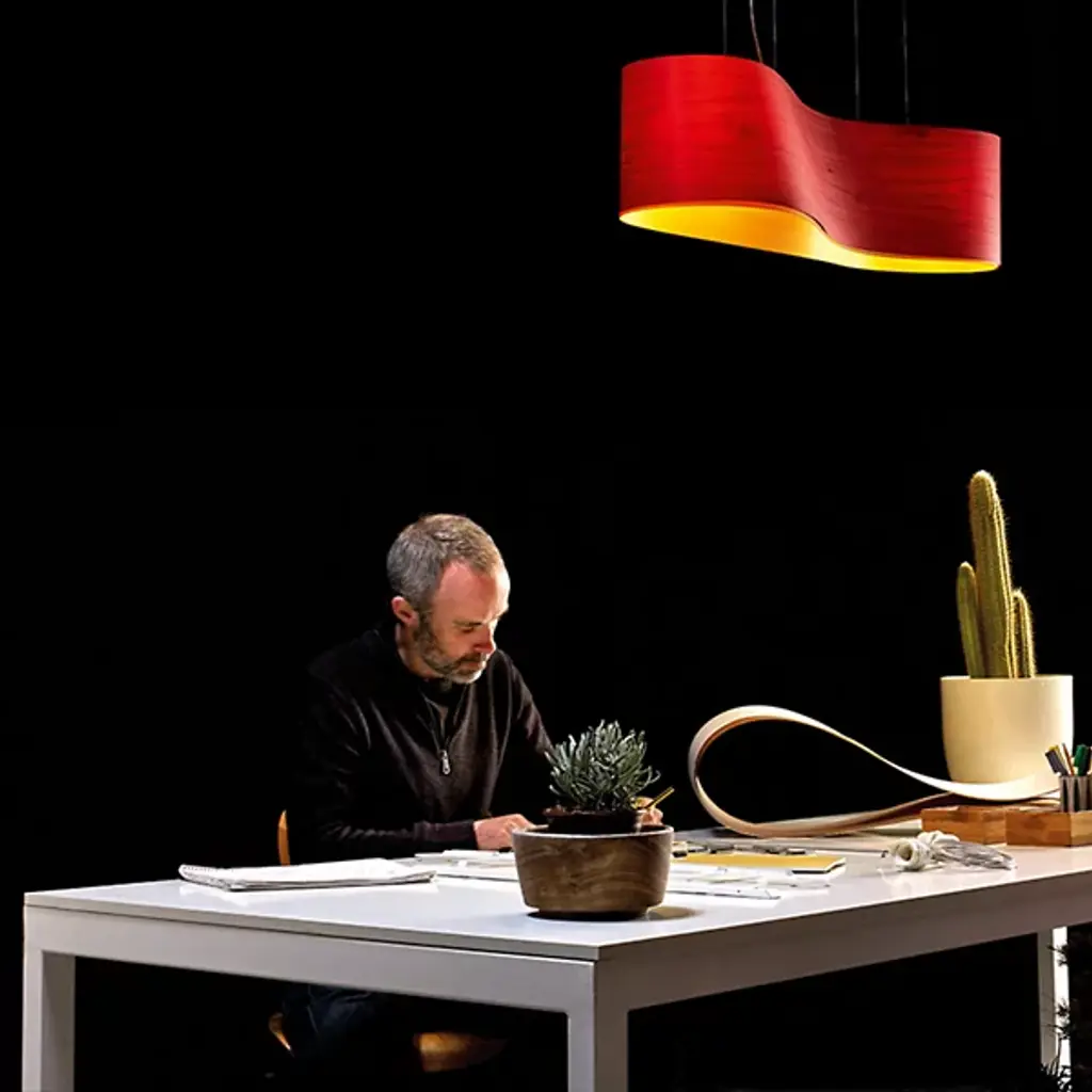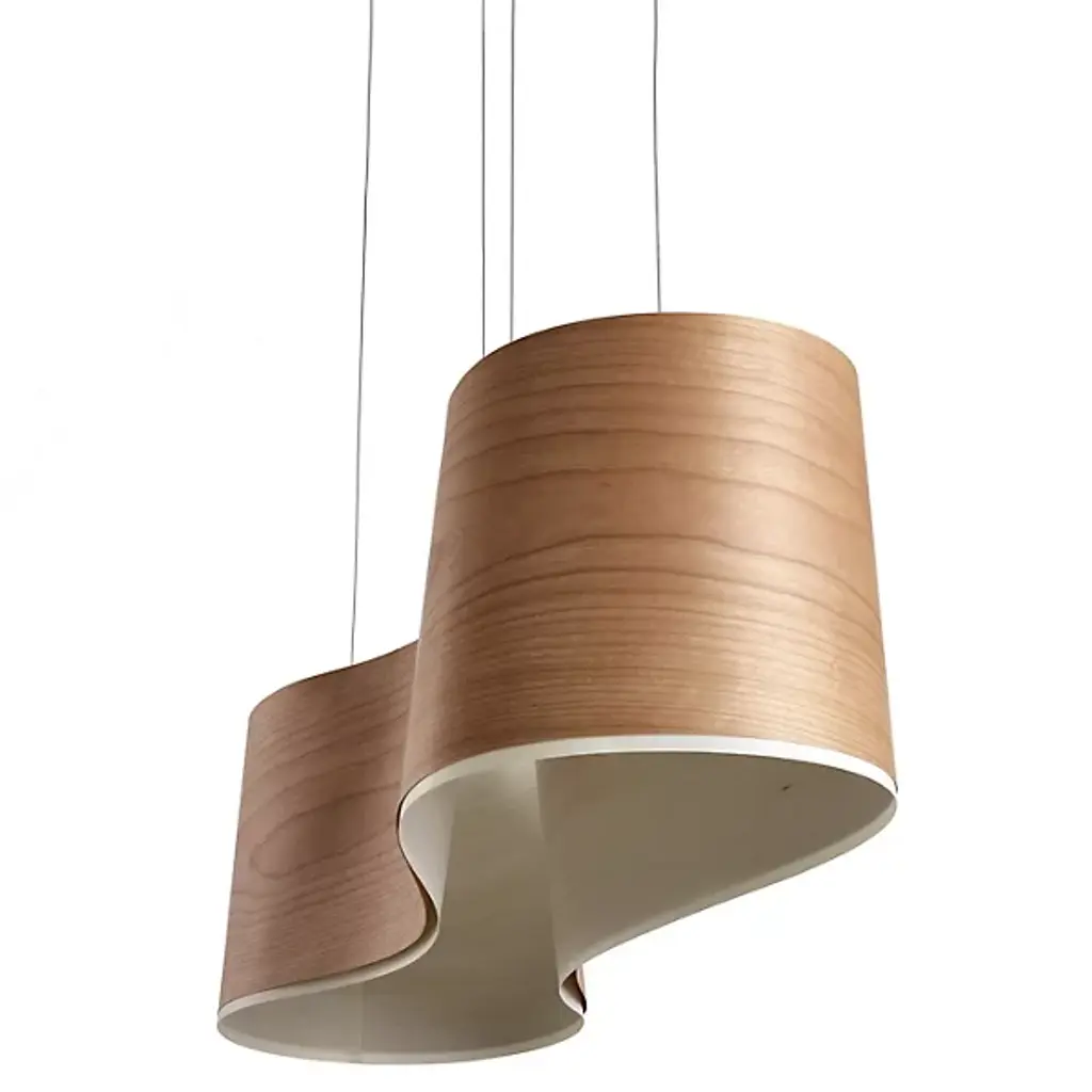 The LZF New Wave S Linear Suspension is a meandering band of wooden veneers, lending a more naturalistic approach to linear designs that can often be too stark or minimal. Two strips of wood are fitted together to create the shapely silhouette, finished on the interior. The interior shade color picks up the light remarkably well, creating a glowing interior that provides ample down lighting as well.