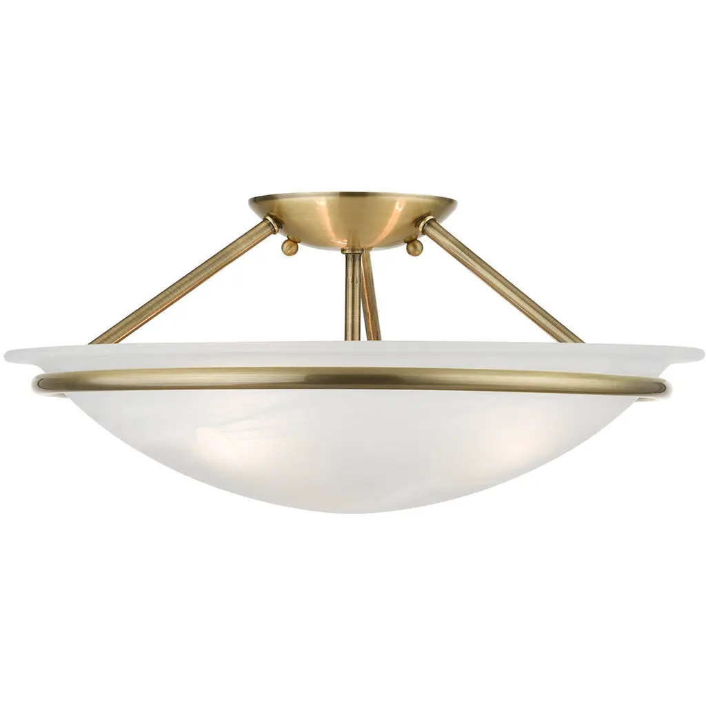 Newburgh 3 Light 16 Inch Antique Brass Semi-Flush Ceiling Light