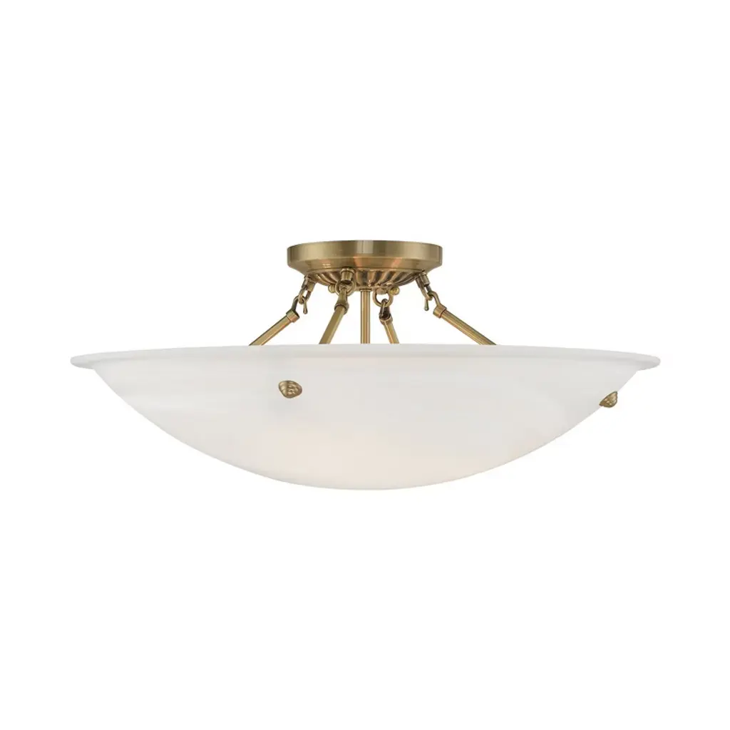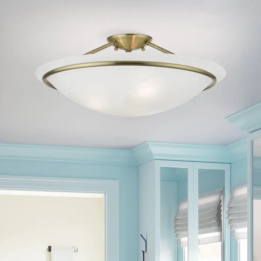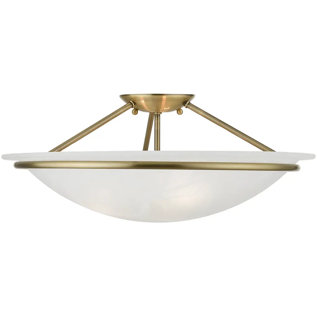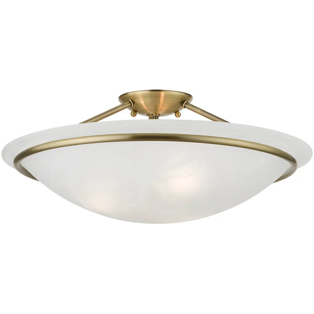Newburgh 3 Light 20 Inch Antique Brass Semi-Flush Ceiling Light