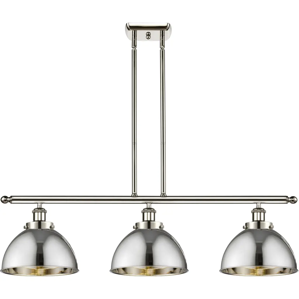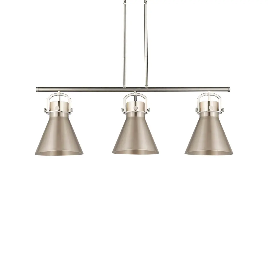 Newton Cone 3 Light 42 Inch Satin Nickel Island Light With Curved Shade Holder Ceiling Light
