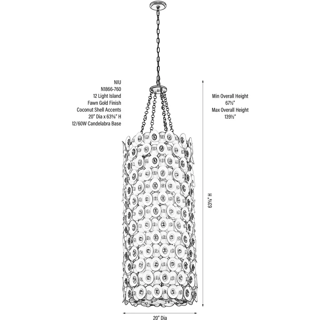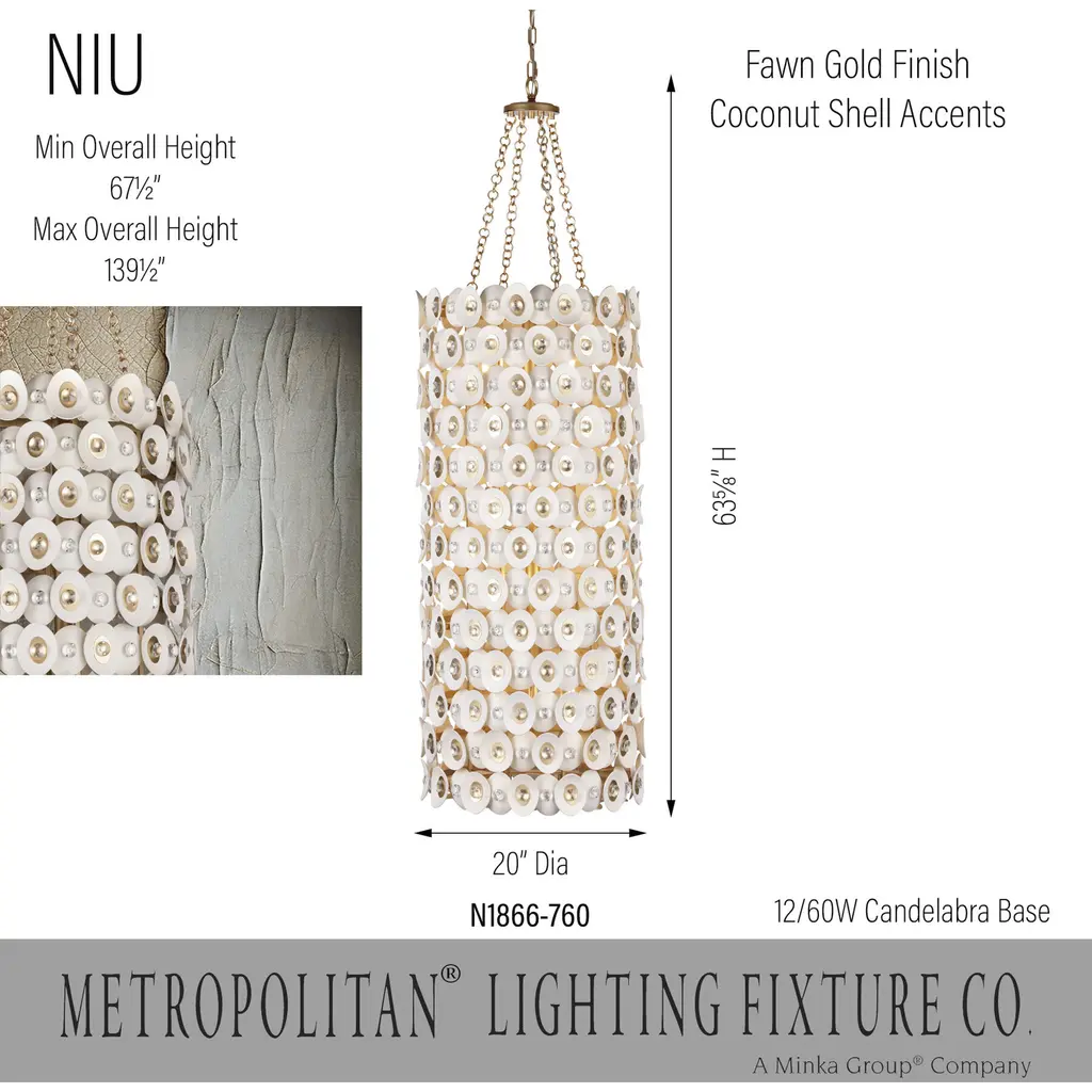 This 12 light Foyer from the Niu collection by Metropolitan will enhance your home with a perfect mix of form and function. The features include a Coconut Shell Gold / Coconut Shell White finish applied by experts. This item qualifies for free shipping!