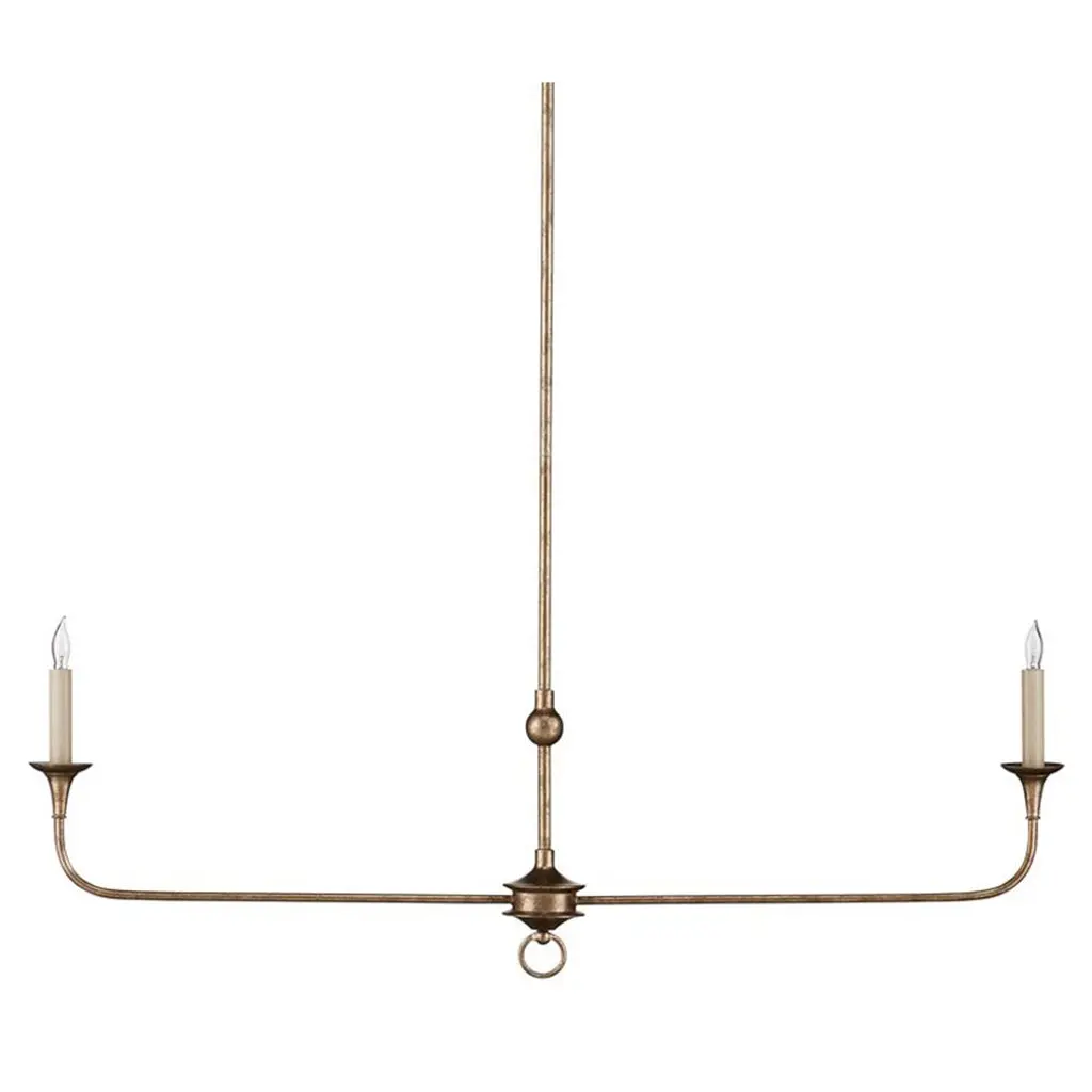 The Nottaway Linear Suspension from Currey & Company offers captivating candlelight-style illumination, creating a pleasant atmosphere. The transitional style is embodied in the upward curve of the framework, adding an artful sensibility to your space. Crafted from wrought iron, Nottaway is durably made, providing longevity. Your light fixture draws your eye as it is illuminated by efficient candelabra base LEDs, providing charm and functionality. Nottaway showcases with evenly spaced LEDs, providing a uniform aesthetic and creating a balanced and harmonious lighting display.