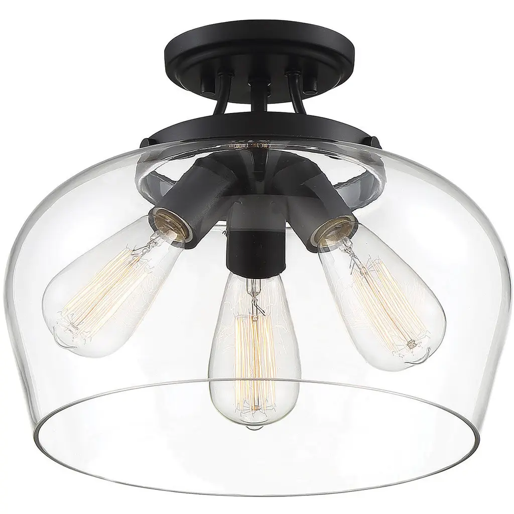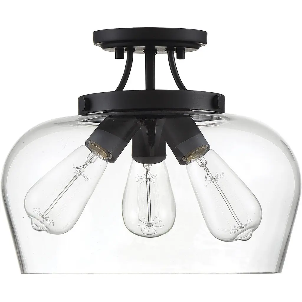 Octave 3 Light 13 Inch Black Semi-Flush Ceiling Light, Essentials