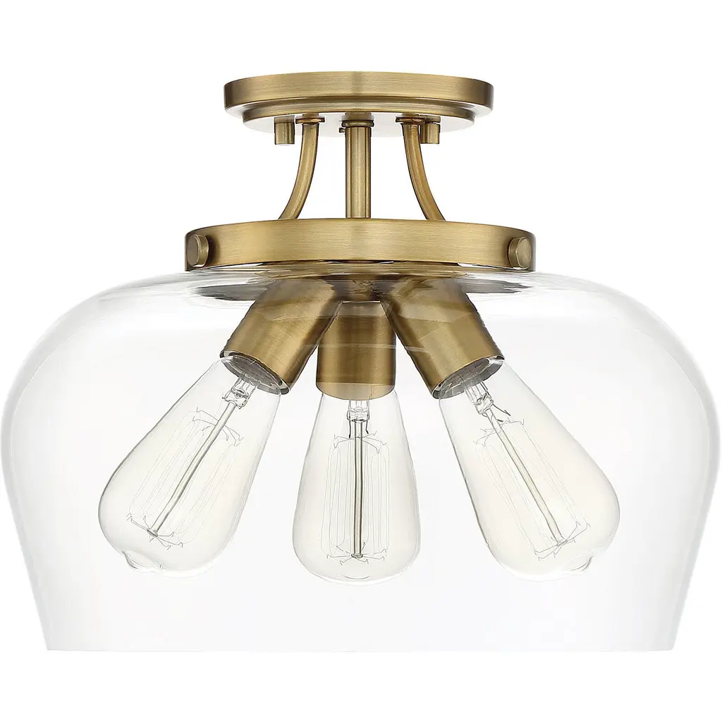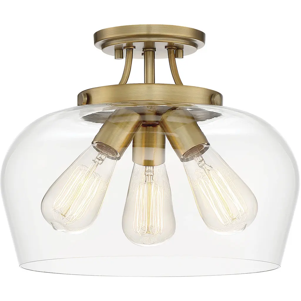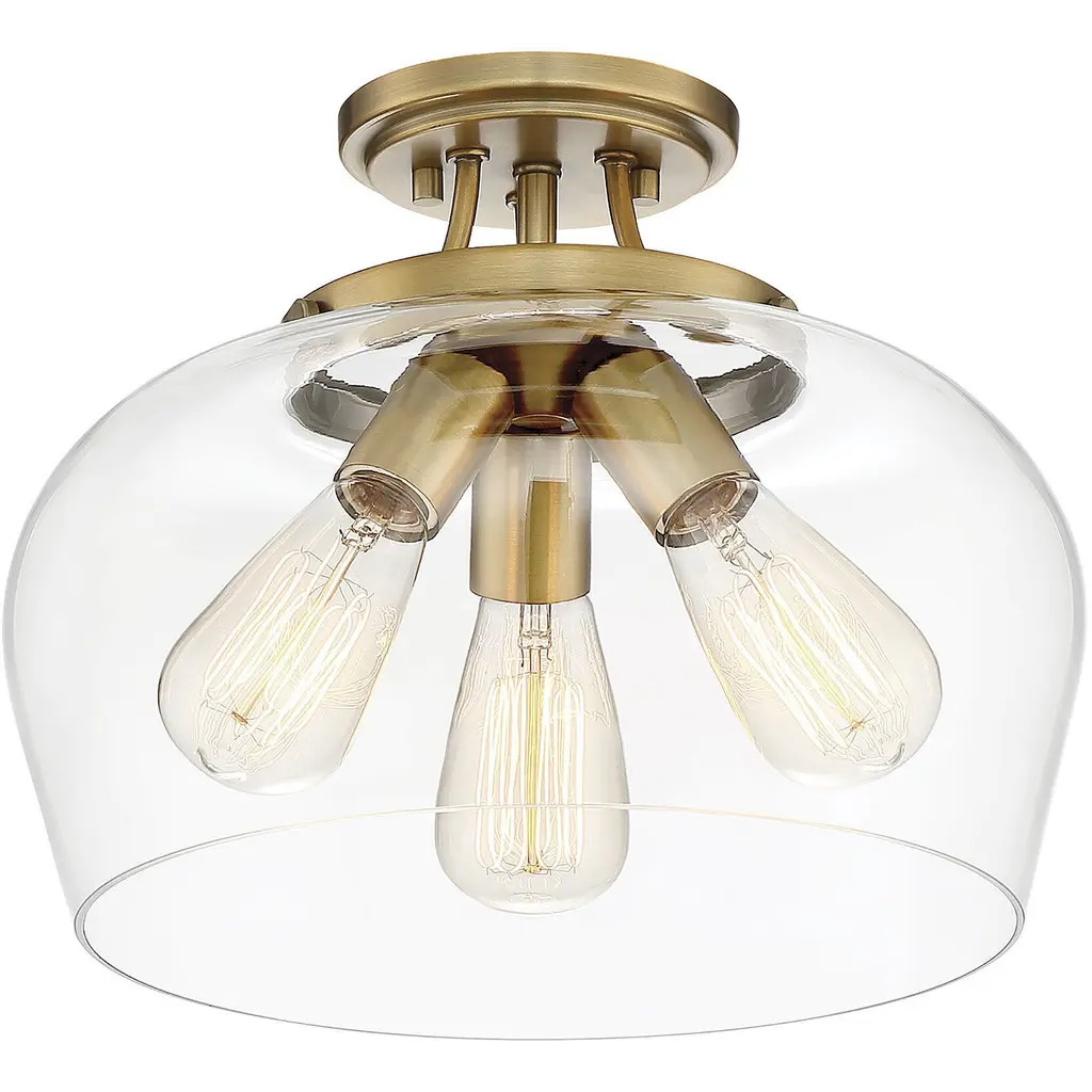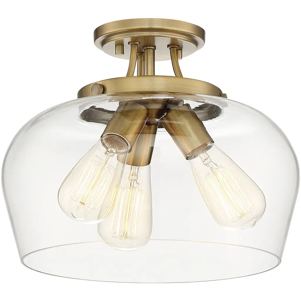 Find close-to-ceiling light with understated elegance when you get the Savoy House Octave 3-light ceiling semi-flush mount. It features a shade of curved glass, minimal detailing and a warm brass finish. Semi-flush mounts can be used on the ceiling of pretty much any interior room, including foyers, hallways, stairways, closets, bathrooms, bedrooms, kitchens and more Bulbs not included. Try using stylized bulbs like Edison or tubular for a different look The warm brass finish can be paired with brass hardware or mixed with hardware in other finishes. Try the Octave with glam, transitional or contemporary style rooms for a chic look. When you choose a Savoy House lighting fixture, you can be certain you've selected a piece that will withstand the test of time.