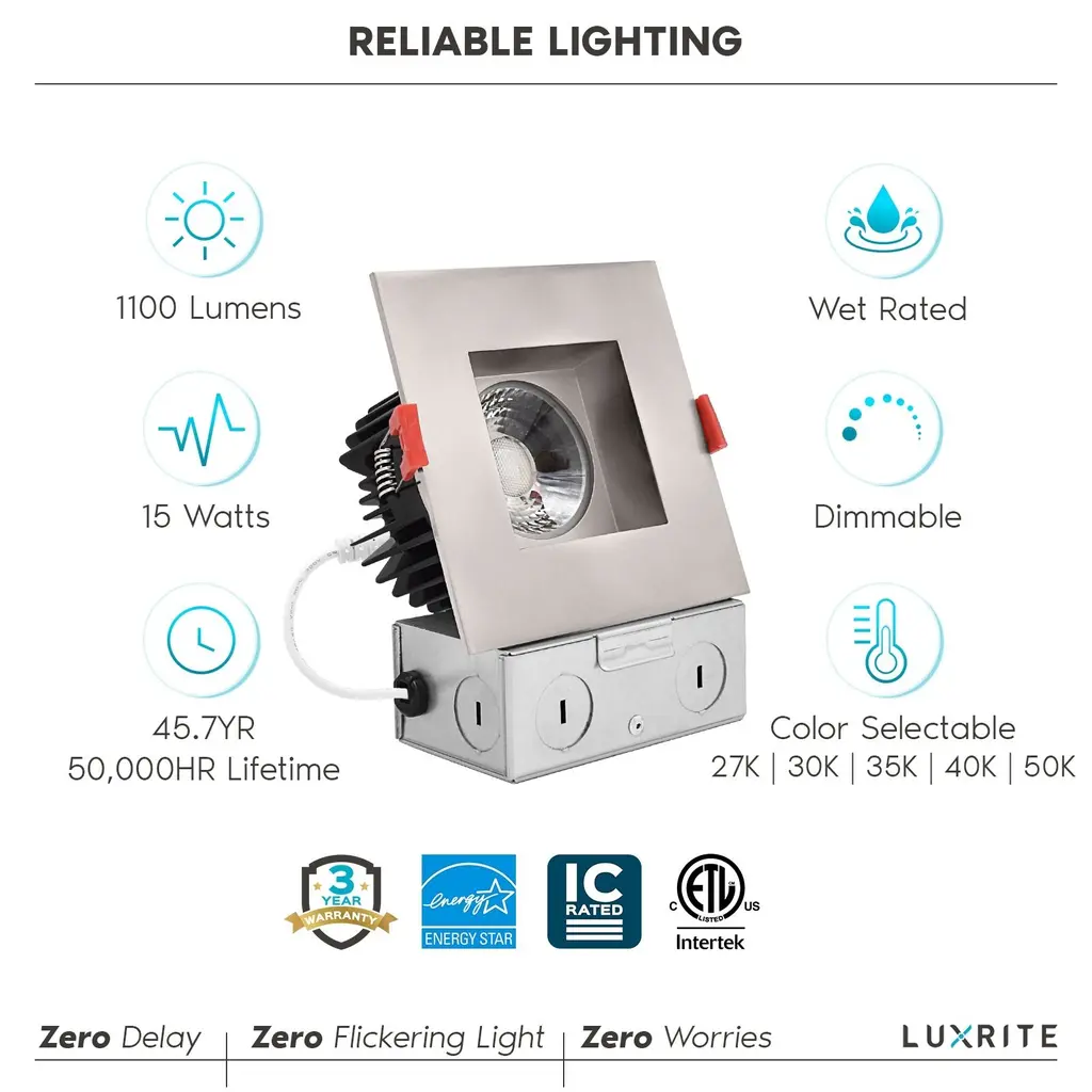 Ocularc 3.5-Inch Square Led Remodel Non-Ic Dim-To-Warm Trimless Housing