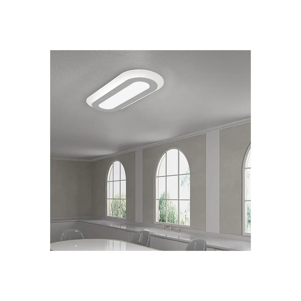 Two plates, held in tandem - their unified geometry combines ambient illumination with a powerful downlight.