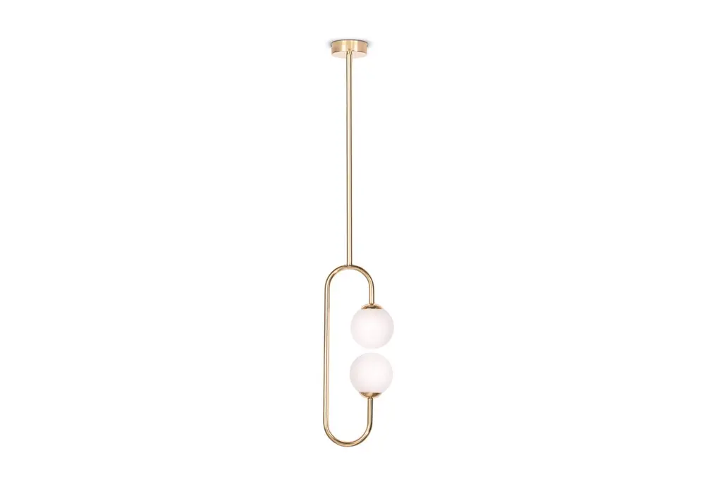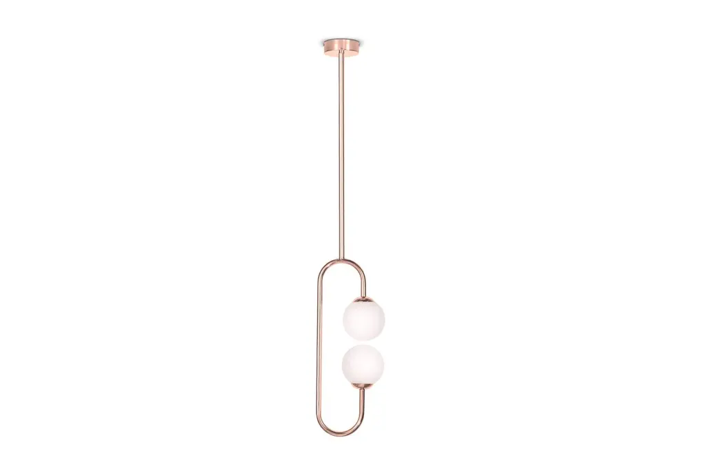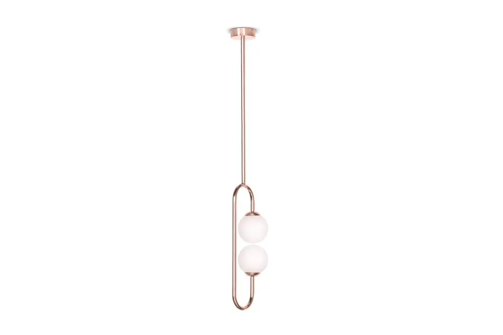 Olivia copper ceiling lamp, Royal StrangerDimensions: W 20 x D 14 x H 114 cmMaterials: Body polished brass. Glass balls Blown glass opal diffuser.Inspired by the femininity and using bold and vibrant color schemes, this collection is meant to be positive and happy, celebrating the inner beauty, elegance and superpower of every Women of the World. This graceful and feminine ceiling lamp is a very light way to lighten your space.As Picture: Composed by brass and white glass balls.MetalsBrass, copper or stainless steel in polished or brushed finish.Inspired by the femininity and using bold and vibrant color schemes, this collection is meant to be positive and happy, celebrating the inner beauty, elegance and superpower of every Women of the World. Falling from the sky, this glamorous ceiling lamp is the perfect add to give a fun and elegant touch to an ambience.Curiosity: The name Alice means “of noble quality”, “of noble lineage”.As Picture: Composed by brass, handmade and hand painted ceramic pieces and silk striped lampshade with a golden and vibrant interior.Royal stranger is an exclusive furniture brand determined to bring you the best unique pieces of art and design.Fusing design, art and the best craftsmanship, they strive to deliver the best state of the handmade art furniture. The design team works every day to create meaningful products that represent values such as passion, function, aesthetics and know-how. Values that are meant to represent Royal stranger’s DNA. This dedication is present at all stages of production and the combination of craftsmanship and innovative design contributes toour final purpose: to produce certified high-quality products, made with passion and expertise and using royal materials such as gold leaf, rich woods and high quality lacquers.It was in 2013, as an architects, that Sofia Santos & Rui Santos started to push the boundaries of innovation in several retail design concepts for some of the best stores in Portugal. This will has always been present in their work, and that’s how the brand was born.