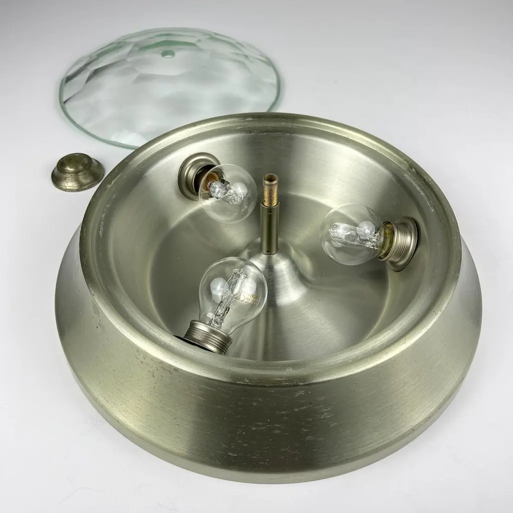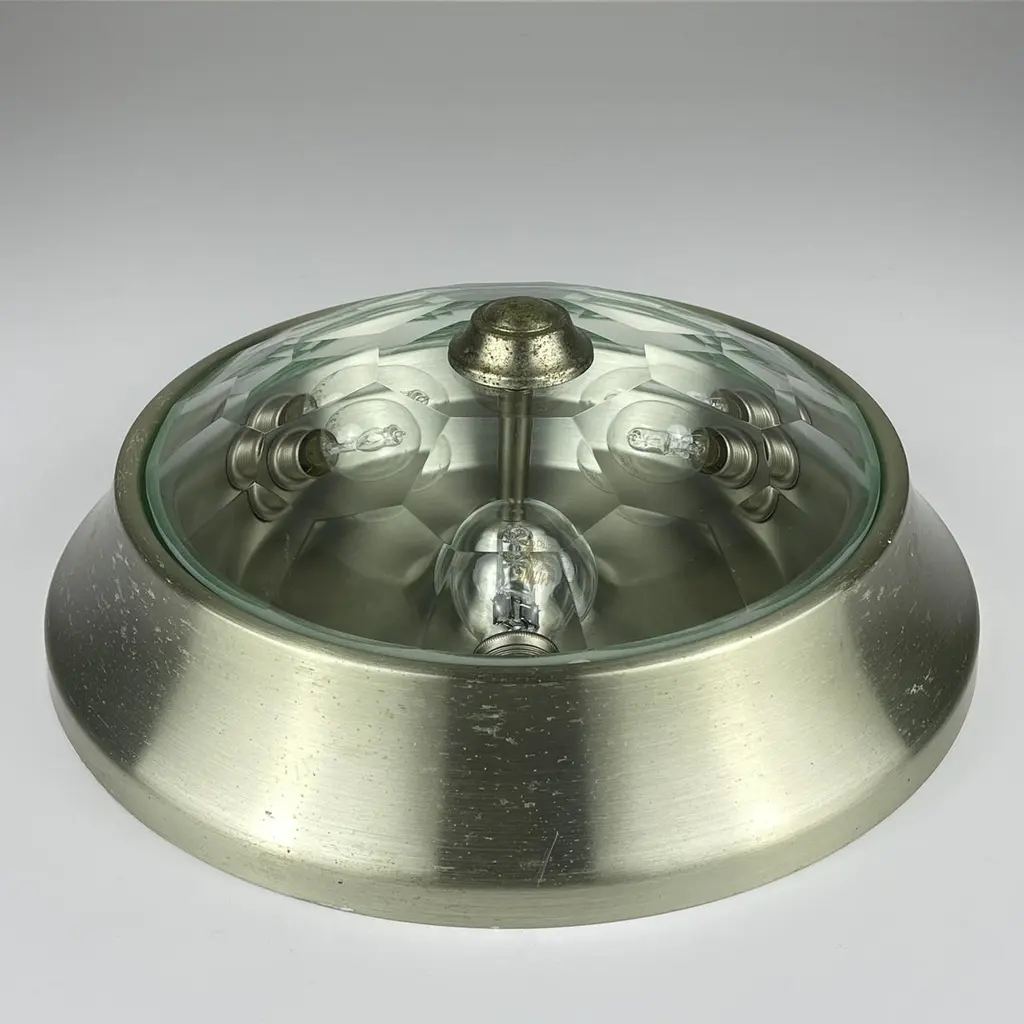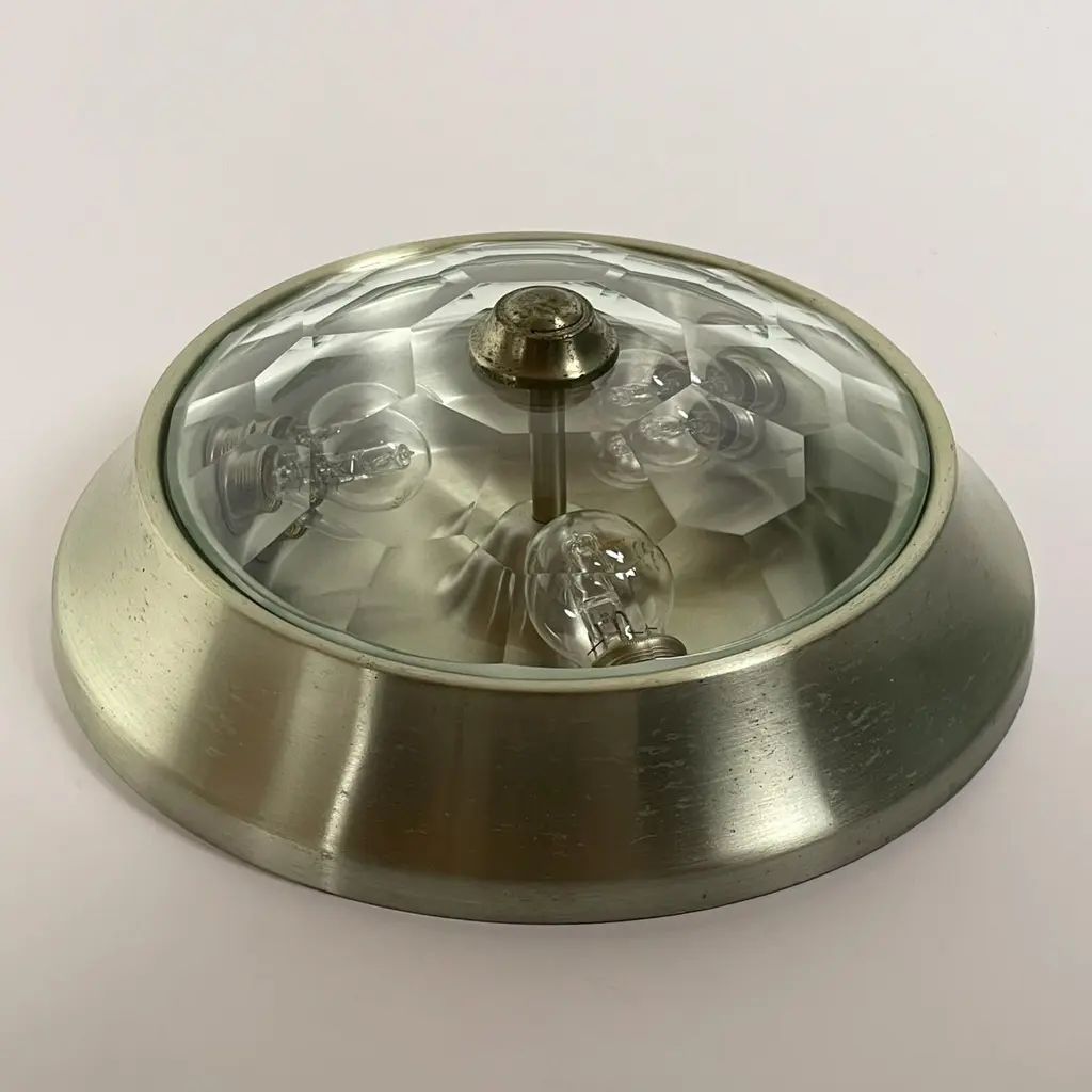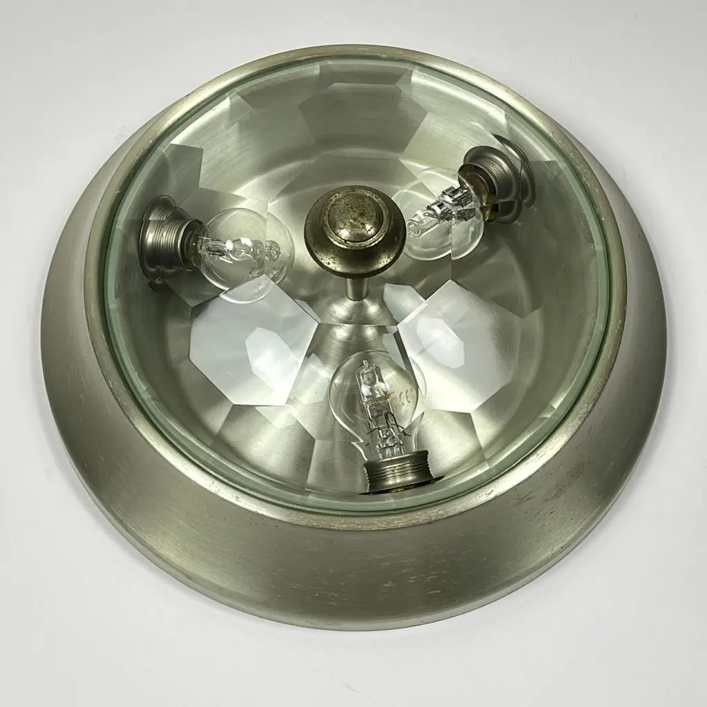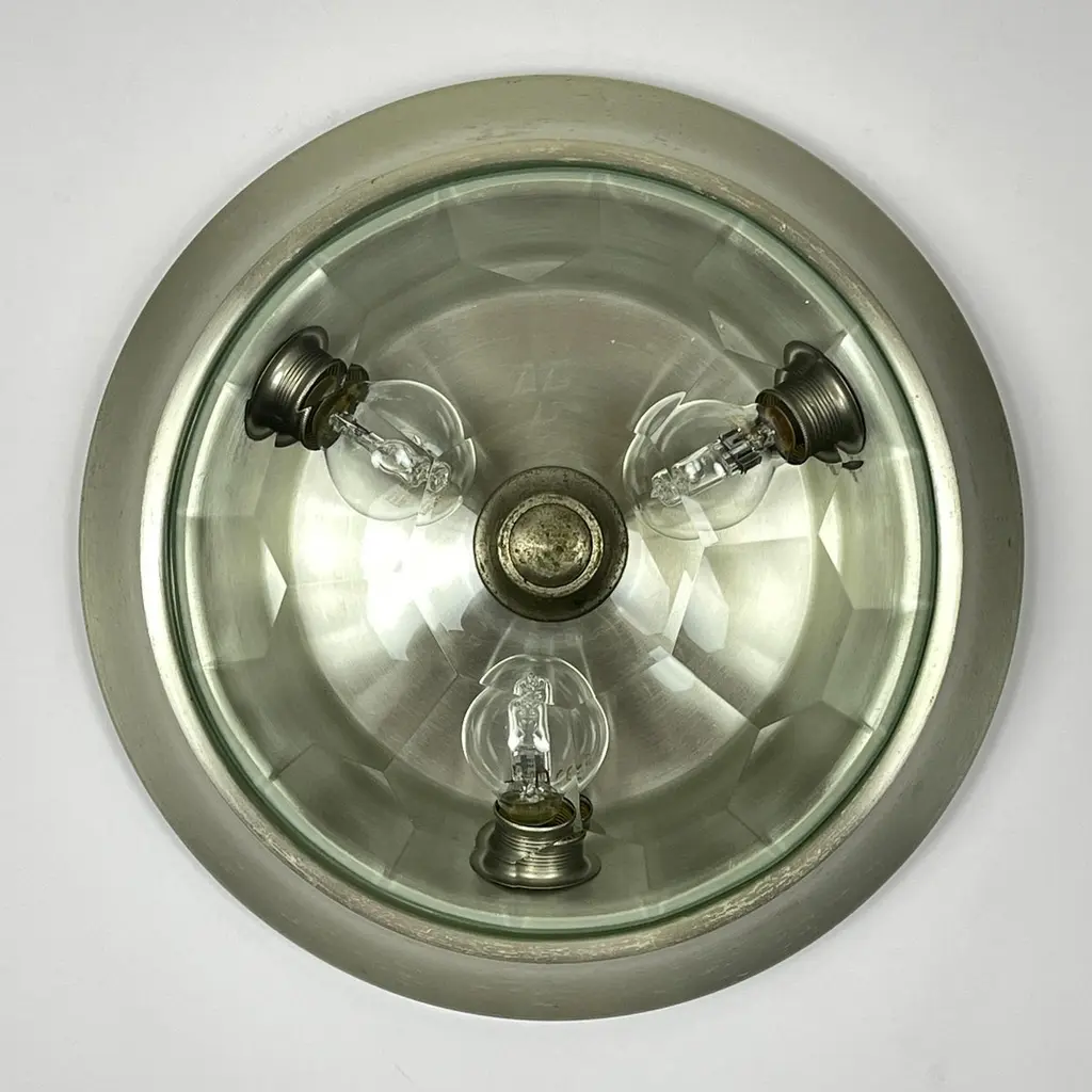 Beautiful designer ceiling lamp made in Italy. Designed by Pia Guidetti Grippa in the 1960s and produced by LUMI Milano in the following years.Pia Guidetti Crippa studied at the Brera Academy of Fine Arts in Milan and graduated in 1967. After that, he dedicated herself to furniture and lighting design, collaborating with the Lumi company founded by Carlo Antonio Crippa in Milan in 1944. For thirty years, she has been creating lighting designs for Lumia. Her lamps are known for their scenic qualities and functional design, with rounded lines that give them a unique look.LUMI has been included in the important catalog of “Italian Design Companies: 1950-2000” by Giuliana Gramigni, which means that she is among 127 famous names representing our “made in Italy” style and taste.The lamp has the original manufacturer's label.The lamp is in very good vintage condition.Dimensions:Width: 32 cm / 12.6 inchesHeight: 12 cm / 4.72 inchesLamp requires European 3 x E14 lightbulb and compatible with E12 USA socket. Works with standard bulbs, LED or halogen, 220V for Europe and 110V for the USA.We offer a secure worldwide shipping. Each of our lamp is shipped in a personal custom-made wooden box.If you have any questions, please contact us. We're always in touch!