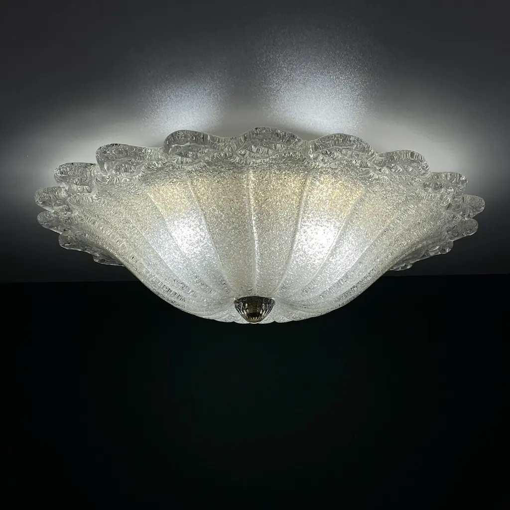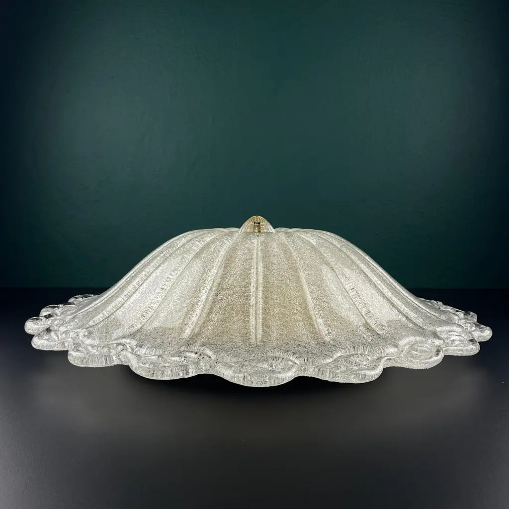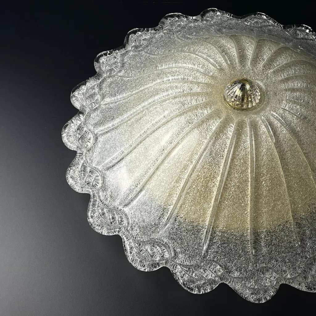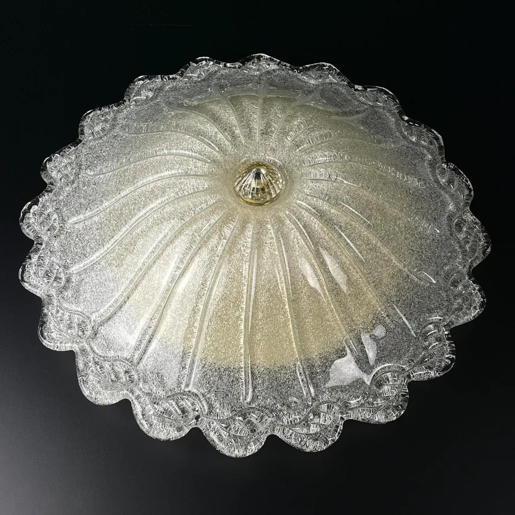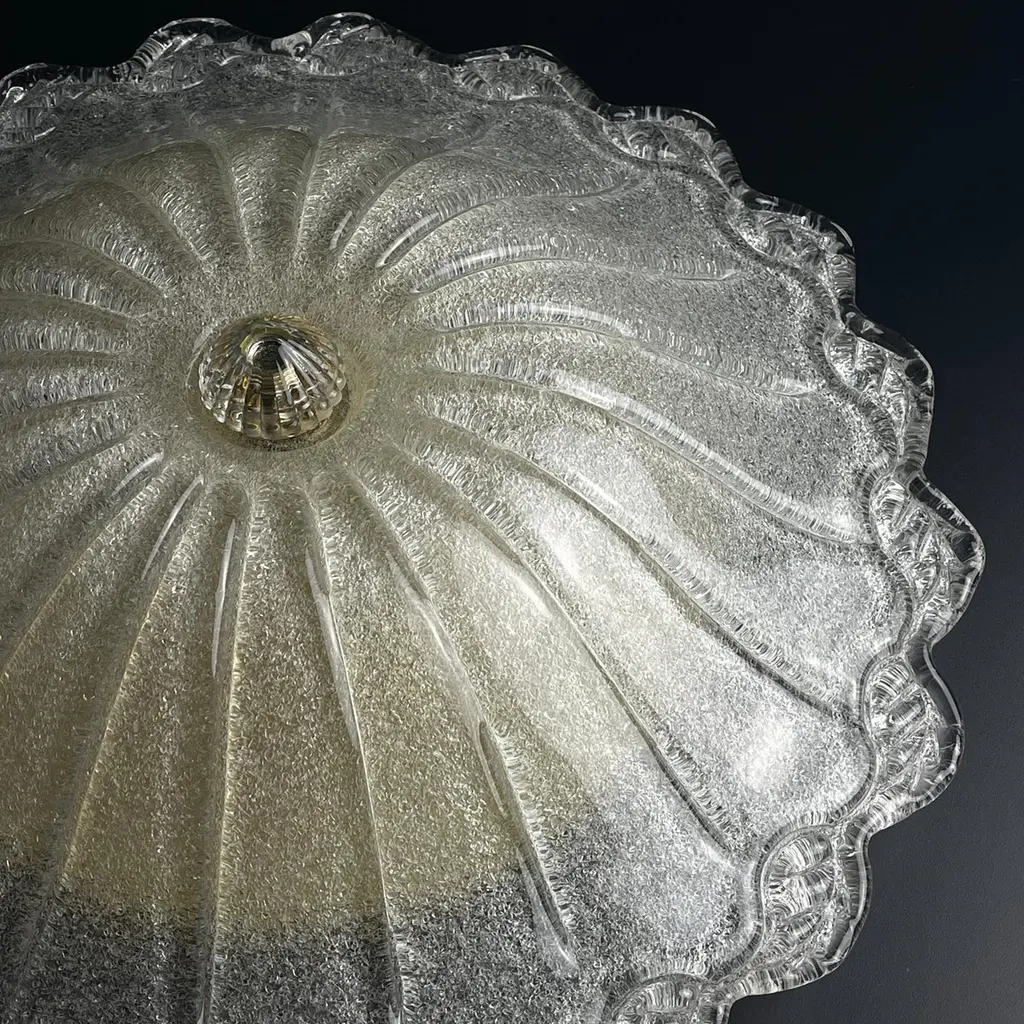 Original large murano glass ceiling lamp made in Italy in the 1990s.The lamp is in excellent vintage condition, with no damage.Dimensions:Width: 51 cm / 20 inchesHeight: 16 cm / 6.3 inchesLamp requires European 3 x E27 lightbulb and compatible with E26 USA socket. Works with standard bulbs, LED or halogen, 220V for Europe and 110V for the USA. European plug.We offer a secure worldwide shipping. Each of our lamp is shipped in a personal custom-made wooden box.If you have any questions, please contact us. We're always in touch!