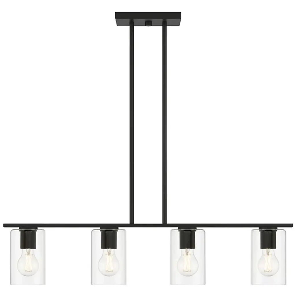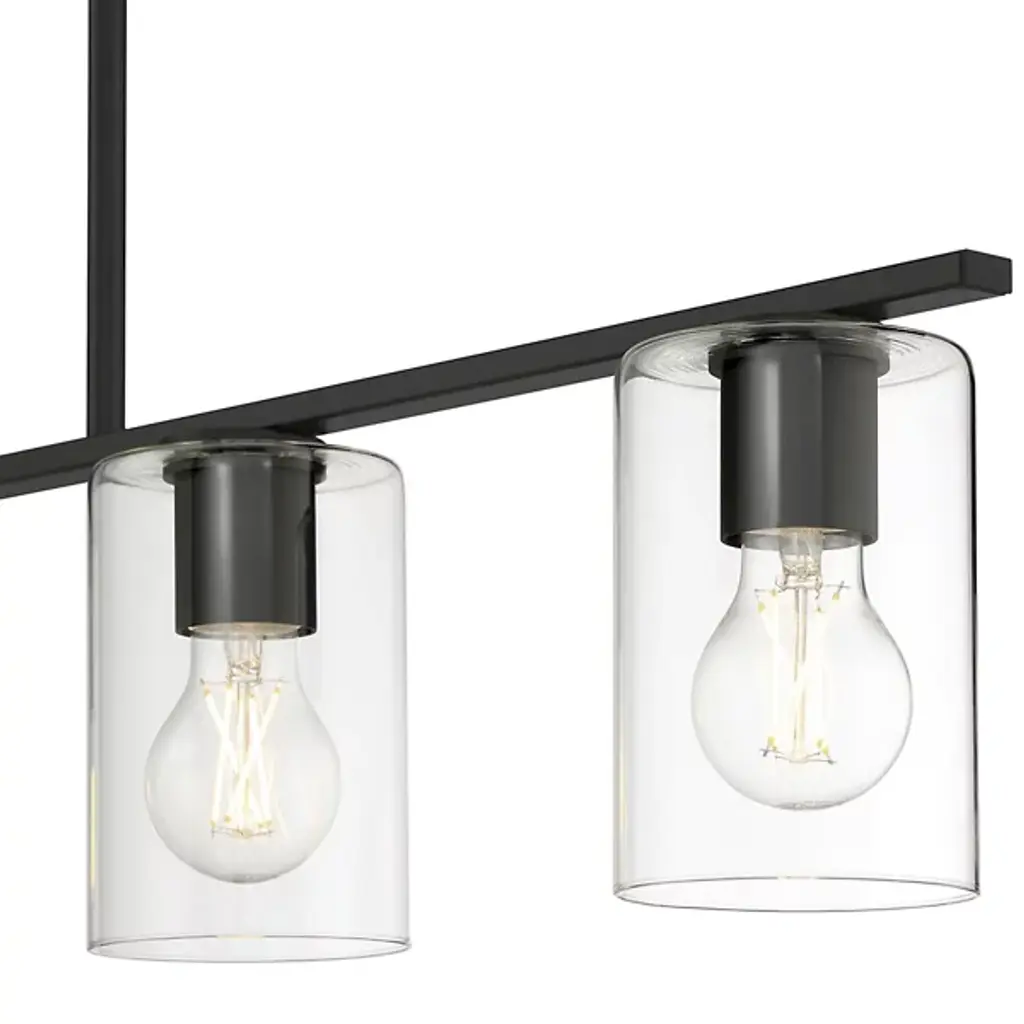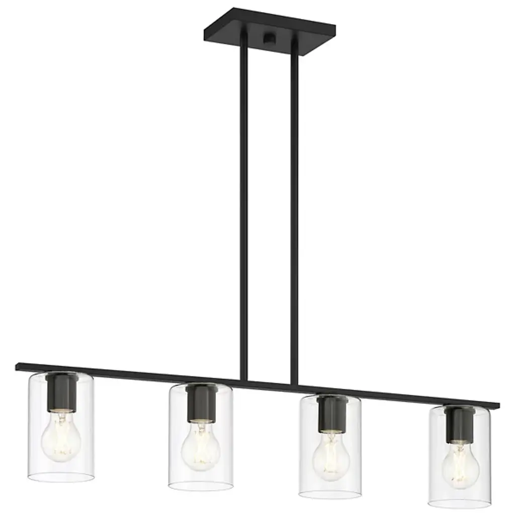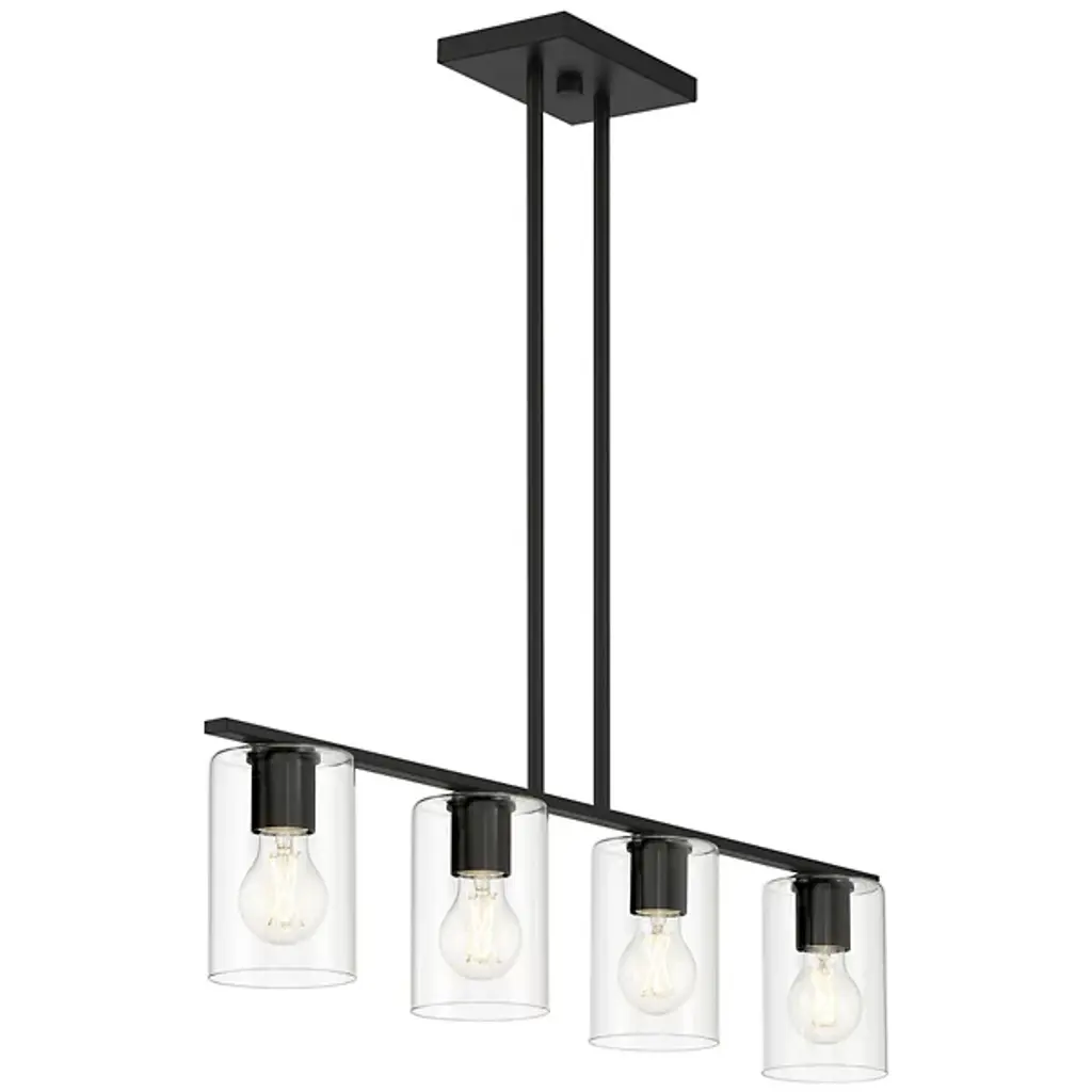 The simple and stylish Oslo Linear Suspension by Access Lighting is made with a minimalist frame that brings its industrial and contemporary aesthetics to life. It's designed with a square profile that features a matching square ceiling mount. This frame is made to elegantly suspend a set of edison light bulbs accented with a selection of clear glass hurricane shades to enhance its weight and proportion. It's a must have designer's favorite look for kitchen islands, dining areas, and more.
