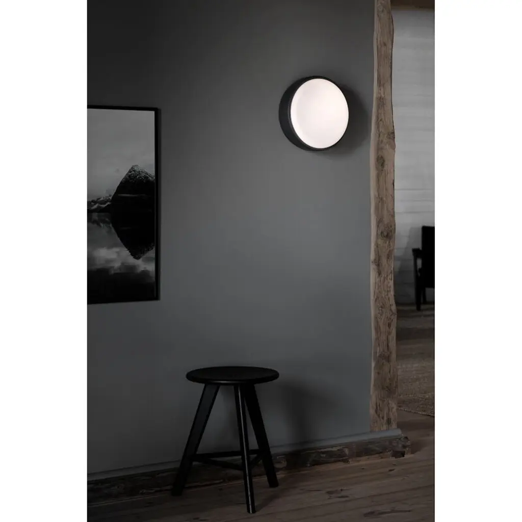 Northern's Over Me wall/ceiling lamp is the perfect solution for small spaces in the home, as its slim size makes it ideal for lighting rooms where traditional lamps won't fit. The multifunctional luminaire can be mounted on the ceiling or wall, depending on the space and your needs. The luminaire consists of a smooth metal frame and a glowing opal glass disc. The circular shade reflects soft light around it, creating mood lighting in the room. The beautiful lamp is charming on its own but can also be mounted in a row of several luminaires on a corridor wall or ceiling. Over Me lamp is certified for use in wet areas, making the minimalist luminaire an excellent choice to brighten up a bathroom.