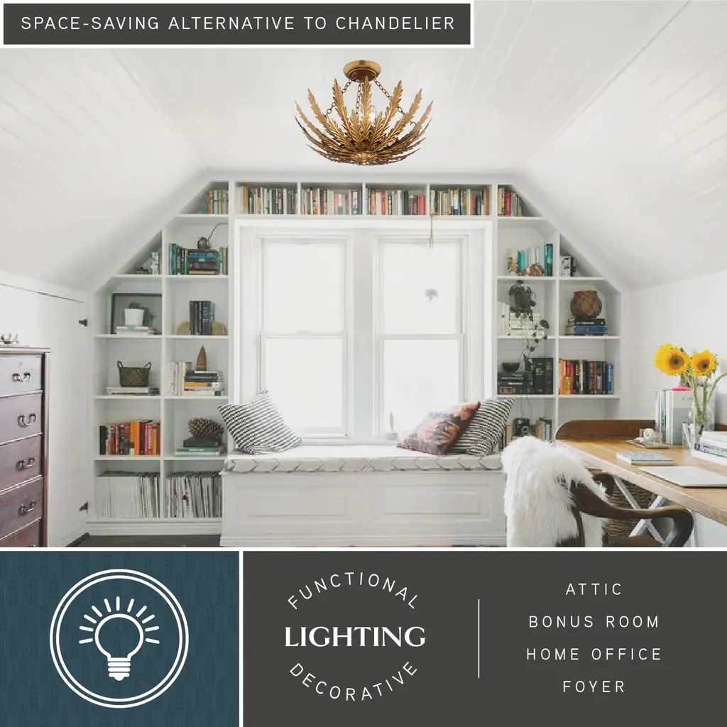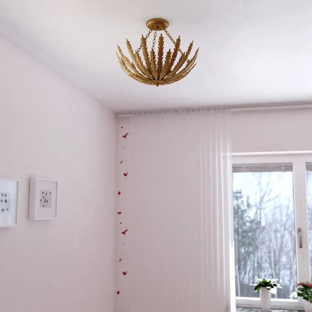 Ozette 18-In W Heritage Gold Semi Flush Mount Ceiling Light Fxiture With Leaf Motif - 18-In W X 14-In H X 18-In D - Painted Gold - 18-In W X 14-In H X 18-In D
