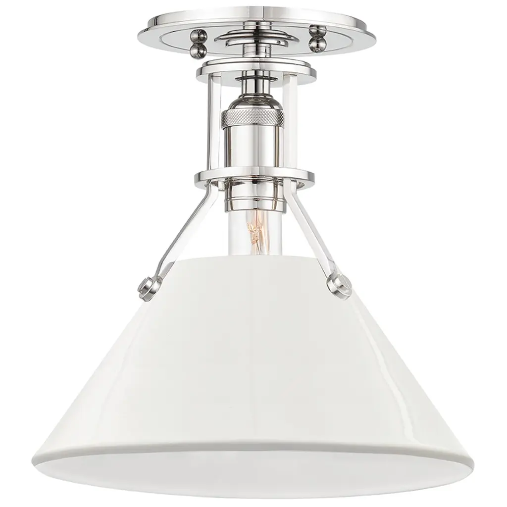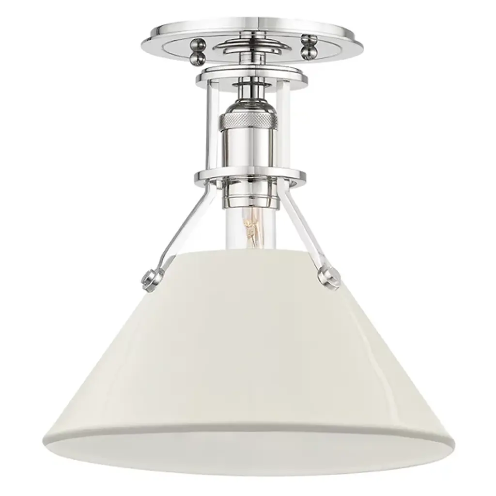 Painted No.2 1 Light 9.5 Inch Polished Nickel/off White Semi Flush Ceiling Light