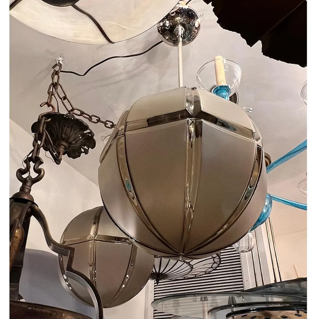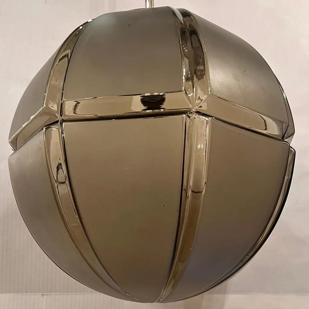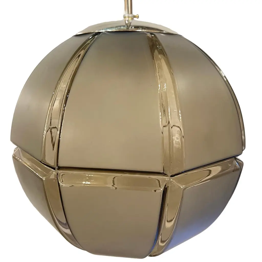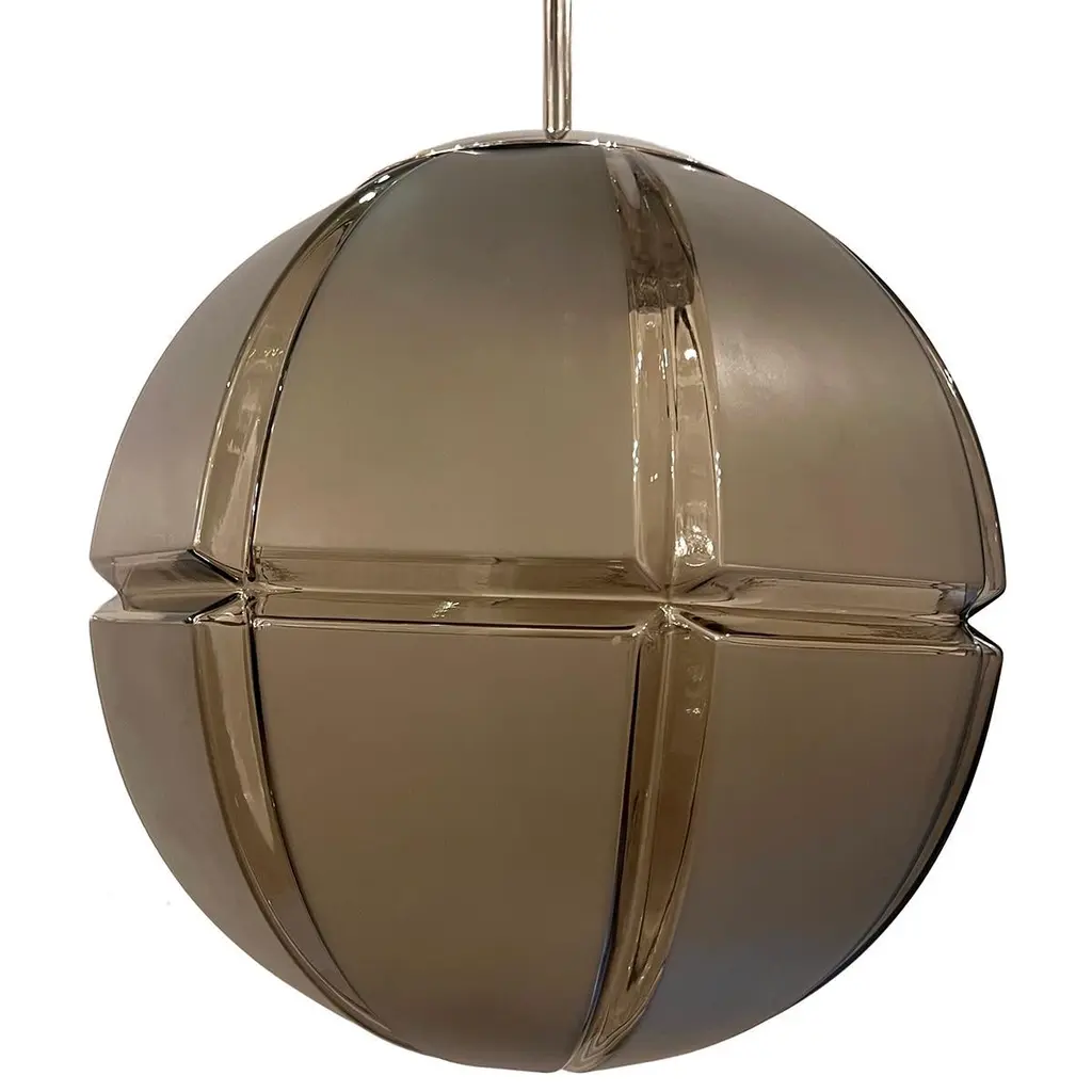 Pair of circa 1960's French molded gray glass light fixtures with an interior Edison light. Sold individually.Measurements:Present drop: 28"Diameter: 13"