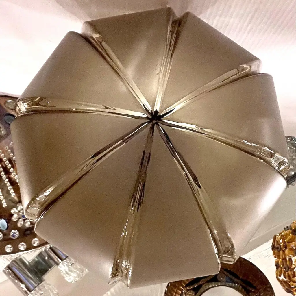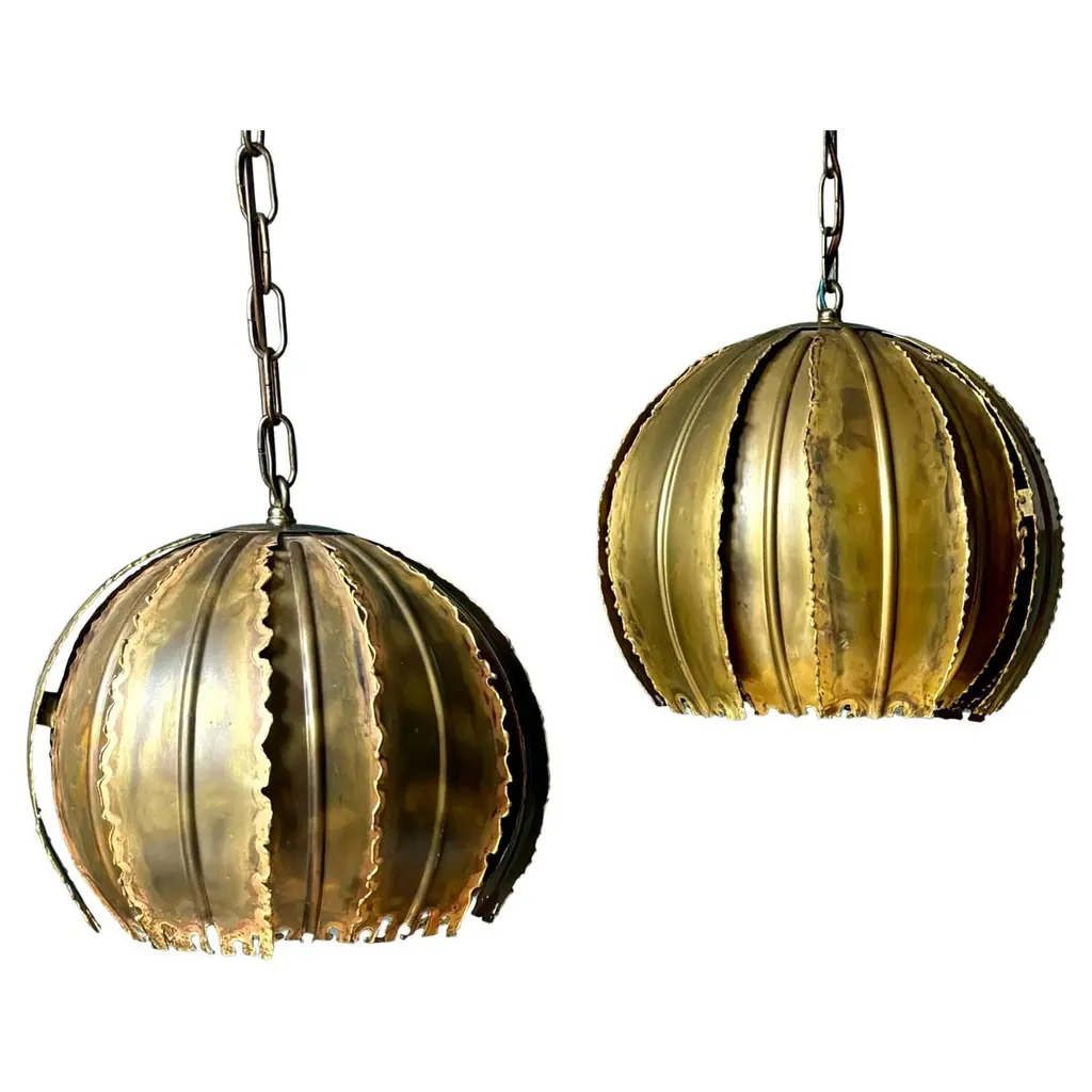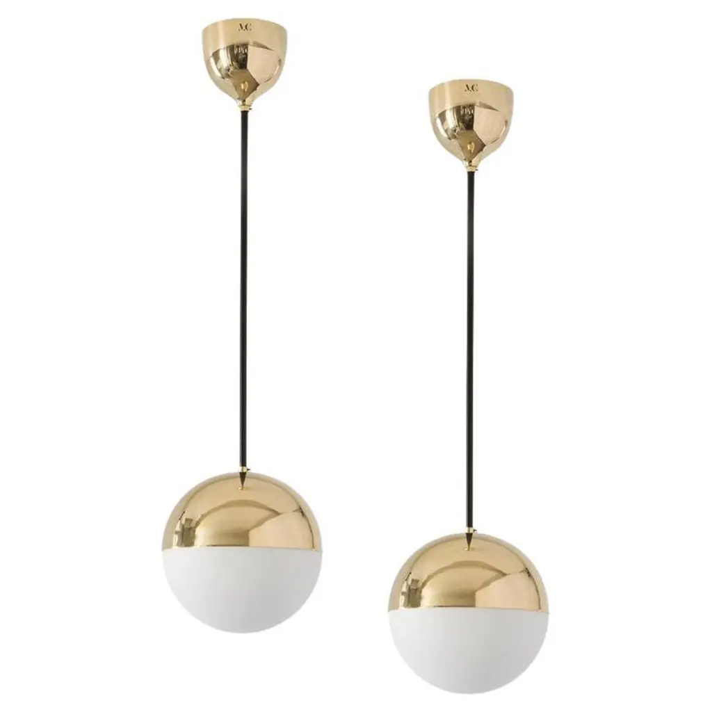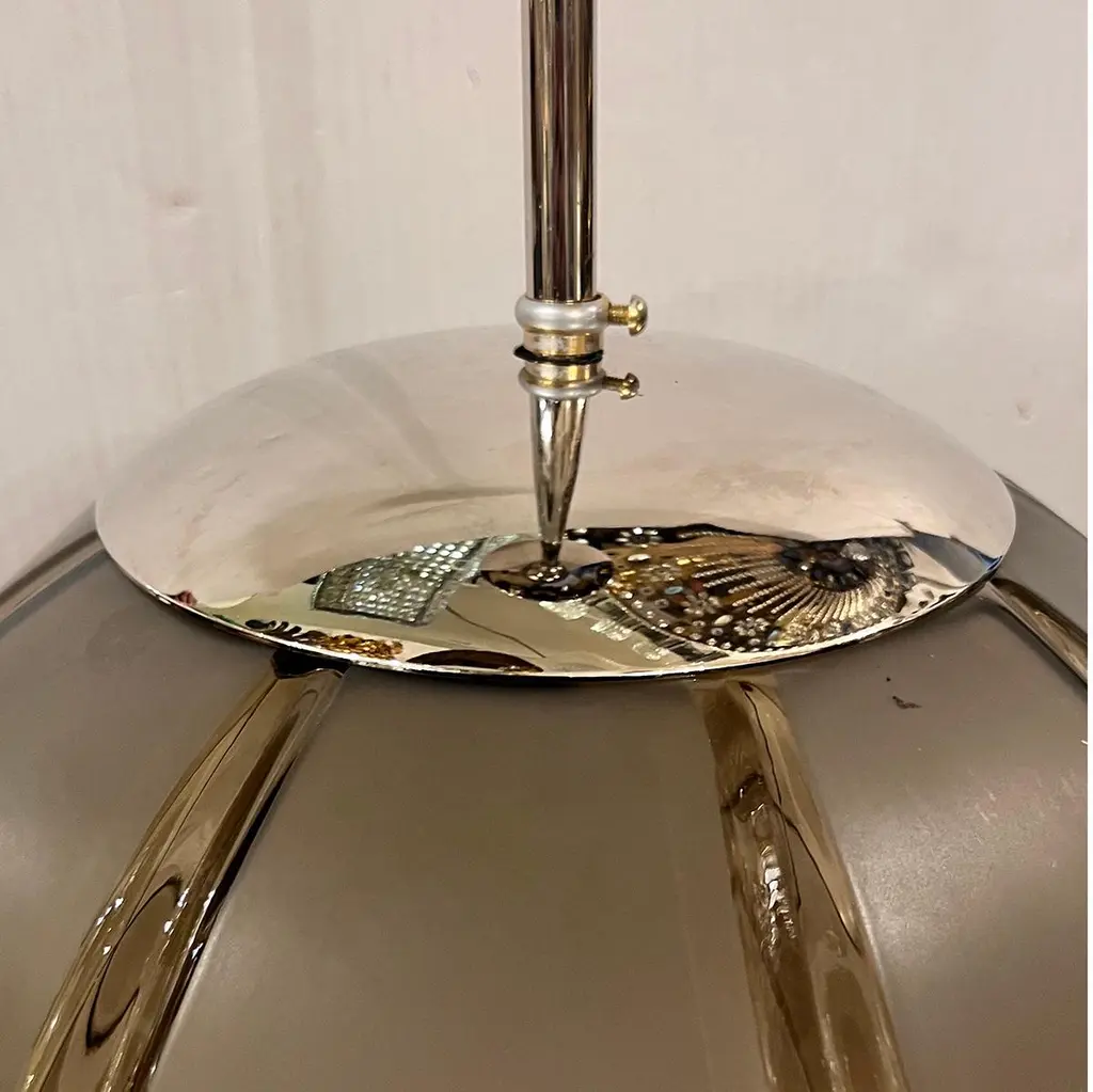 Pair of circa 1960's French molded gray glass light fixtures with an interior Edison light. Sold individually.Measurements:Present drop: 28"Diameter: 13"