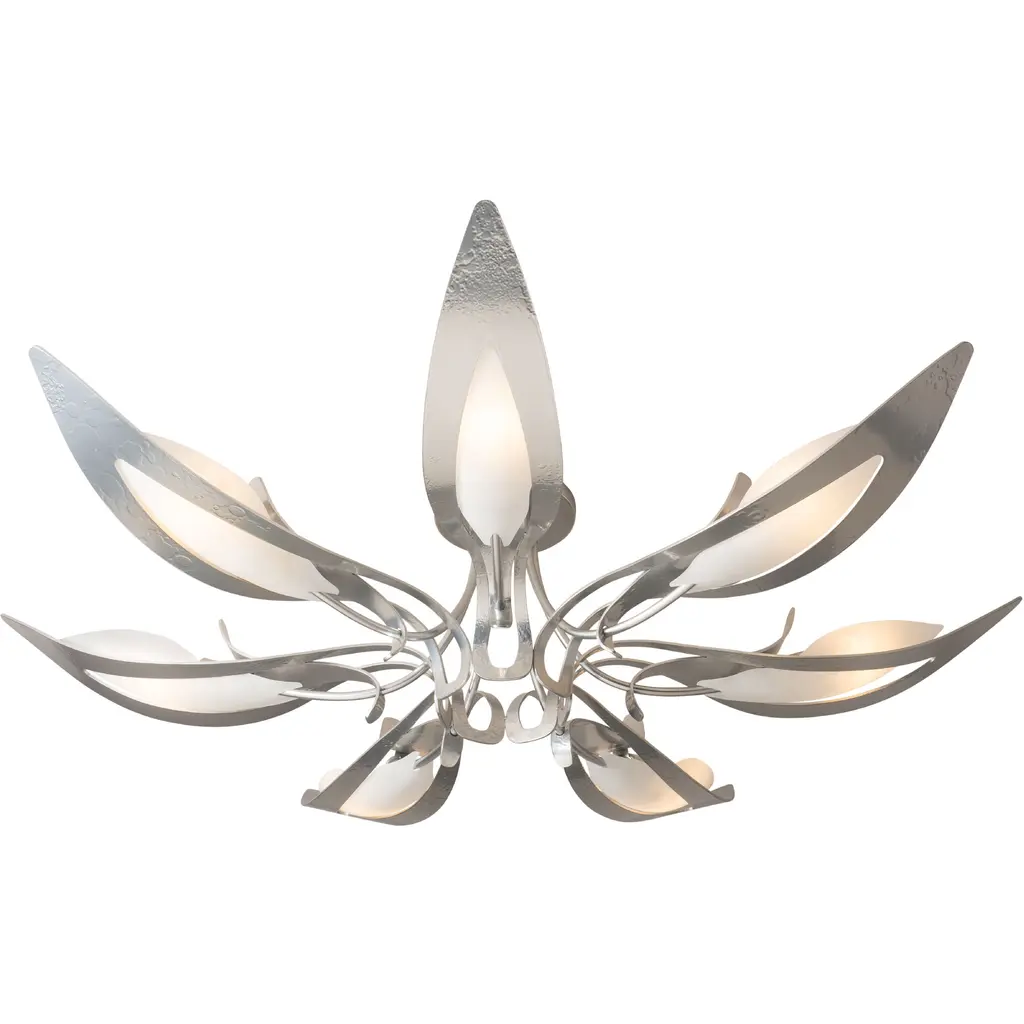 A beautiful way to illuminate any room, the Parasol semi-flush fixture is both delicate and impressive. Each arm was designed to nest a piece of slumped art glass to great effect. According to HF designer Jason Hancock, a "milky" candelabra bulb is the ideal choice to give this fixture the most elegant look.