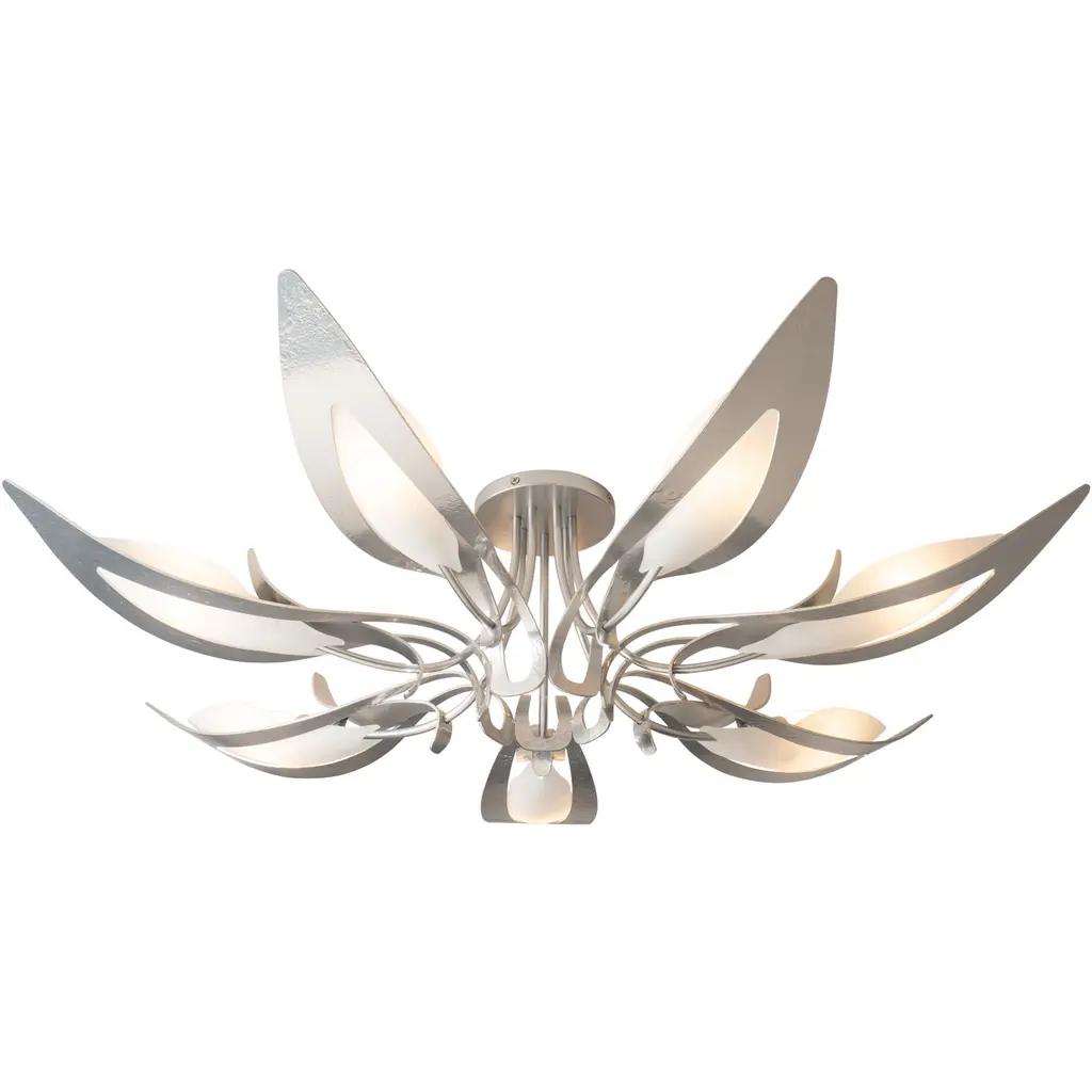 A beautiful way to illuminate any room, the Parasol semi-flush fixture is both delicate and impressive. Each arm was designed to nest a piece of slumped art glass to great effect. According to HF designer Jason Hancock, a "milky" candelabra bulb is the ideal choice to give this fixture the most elegant look.