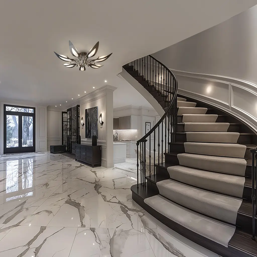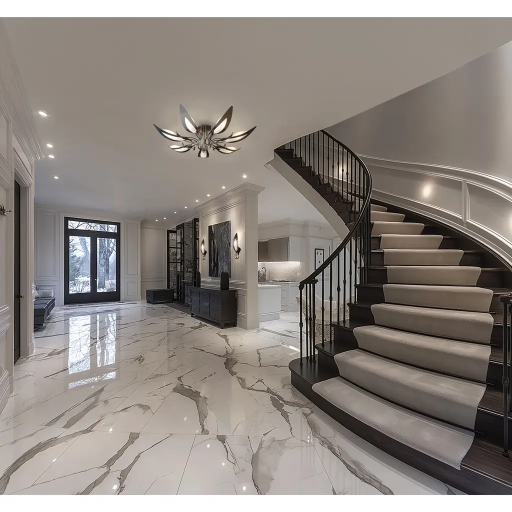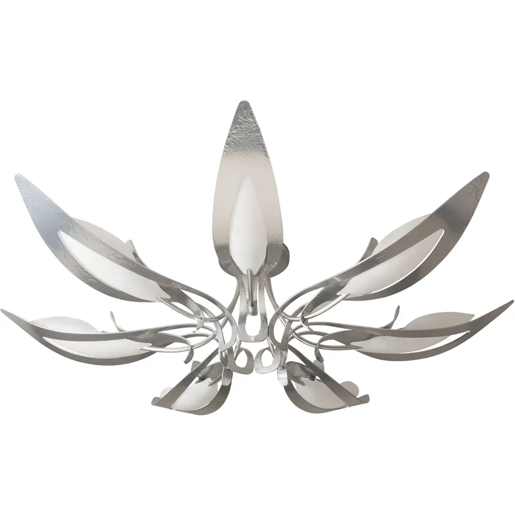 A beautiful way to illuminate any room, the Parasol semi-flush fixture is both delicate and impressive. Each arm was designed to nest a piece of slumped art glass to great effect. According to HF designer Jason Hancock, a "milky" candelabra bulb is the ideal choice to give this fixture the most elegant look.