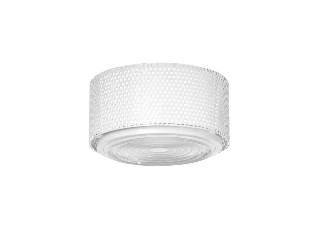 Pierre Guariche 'G13' wall or ceiling light for Sammode Studio in white.Originally designed by Pierre Guariche, this iconic lamp is newly produced in an authorized re-edition by Sammode Studio in France embracing many of the same small-scale manufacturing techniques, quality materials and scrupulous attention to detail as the original. Executed in painted perforated steel and pressed fresnel glass, this light can be mounted on either the wall or the ceiling. Price is per item. Available in unlimited quantities in three sizes and in choice of black, gray, or white, please see our other listings. This listing is for the medium lamp in white.In-stock lead time 7-8 weeks. Out-of-stock lead time 9-10 weeks or more. Please note that inventory availability and lead time can change without notice. Please contact us for current lead times prior to placing time-sensitive orders.Accommodates 1x 60W equivalent medium base e26 LED bulb (not included). Recommended LED bulb by Tala available separately. New in box and professionally modified for US electrical. Not UL listed. Recommended UL listing possible from an authorized 3rd party vendor for an additional cost.Made to order.All sales are final.