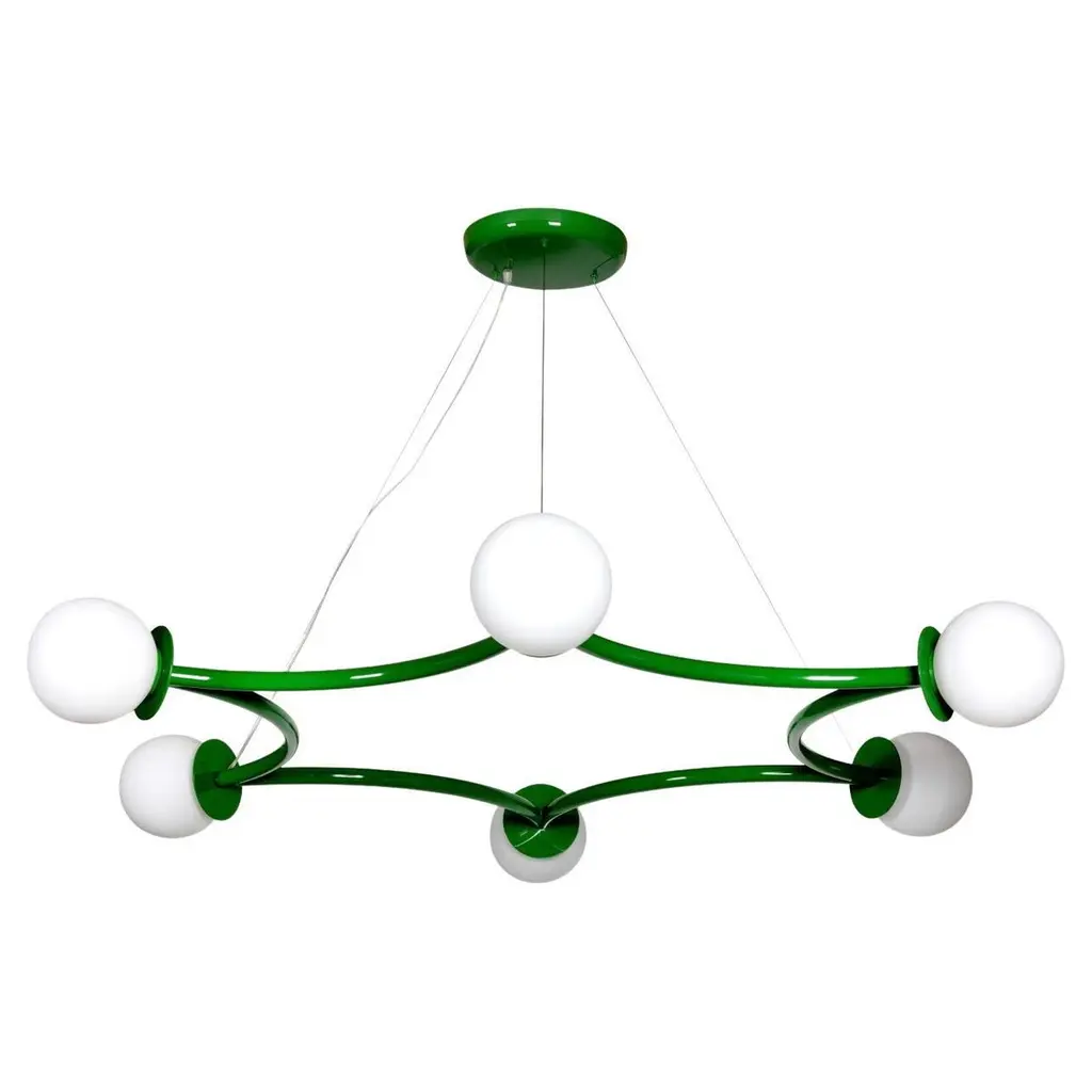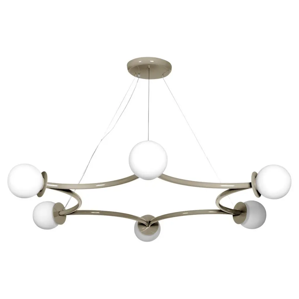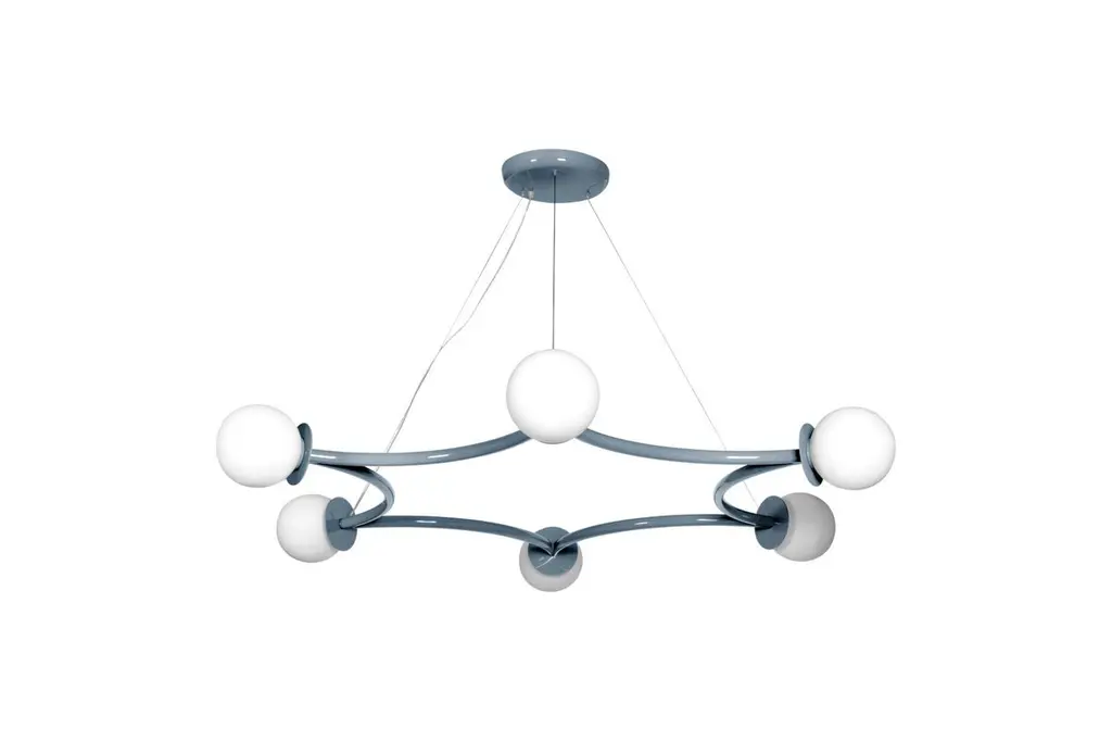 Poppins ceiling lamp by Royal StrangerDimensions: W 180 x D 160 x H 20 cmMaterials: Lacquered with glossy finish. Blown glass opal diffuser.Poppins Ceiling Lamp is a striking constellation describing six concentric light spheres.The opal glass diffusers fluttering in space will draw the eye upward. Looking from below, this aerial star-shaped structure gracefully connects all the dots.Poppins Ceiling Lamp is bound to make an impression for its vast measurements. This starry ensemble is suspended from the ceiling in such a way as to shed light upon unique ambiences.Available in brass, stainless steel and copper with polished or brushed finish, or lacquered in all NCS/RAL colors with matte or glossy finish.All our lamps can be wired according to each country. If sold to the USA it will be wired for the USA for instance.Royal stranger is an exclusive furniture brand determined to bring you the best unique pieces of art and design.Fusing design, art and the best craftsmanship, they strive to deliver the best state of the handmade art furniture. The design team works every day to create meaningful products that represent values such as passion, function, aesthetics and know-how. Values that are meant to represent Royal stranger’s DNA. This dedication is present at all stages of production and the combination of craftsmanship and innovative design contributes to our final purpose: to produce certified high-quality products, made with passion and expertise and using royal materials such as gold leaf, rich woods and high quality lacquers.It was in 2013, as an architects, that Sofia Santos & Rui Santos started to push the boundaries of innovation in several retail design concepts for some of the best stores in Portugal. This will has always been present in their work, and that’s how the brand was born.