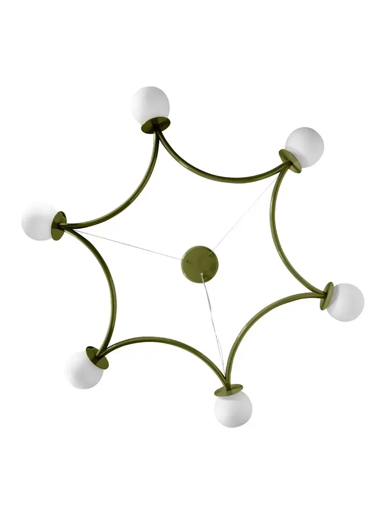 Poppins ceiling lamp by royal stranger. Dimensions: w 180 x d 160 x h 20 cm. Materials: lacquered with glossy finish. Blown glass opal diffuser. Poppins ceiling lamp is a striking constellation describing six concentric light spheres. The opal glass diffusers fluttering in space will draw the eye upward. Looking from below, this aerial star-shaped structure gracefully connects all the dots. Poppins ceiling lamp is bound to make an impression for its vast measurements. This starry ensemble is suspended from the ceiling in such a way as to shed light upon unique ambiences. Available in brass, stainless steel and copper with polished or brushed finish, or lacquered in all ncs/ral colors with matte or glossy finish. All our lamps can be wired according to each country. If sold to the usa it will be wired for the usa for instance. this piece is attributed to the mentioned designer/maker. It has no attribution mark and no official proof of authenticity, however it is well documented in design history. I take full responsibility for any authenticity issues arising from misattribution, up to 250v (europe/uk standard).
