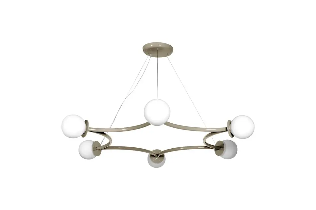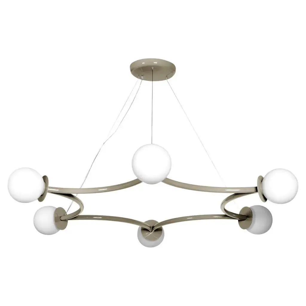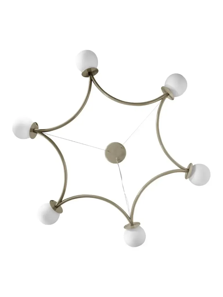 Poppins ceiling lamp by royal stranger dimensions: w 180 x d 160 x h 20 cm materials: lacquered with glossy finish. Blown glass opal diffuser. Poppins ceiling lamp is a striking constellation describing six concentric light spheres. The opal glass diffusers fluttering in space will draw the eye upward. Looking from below, this aerial star-shaped structure gracefully connects all the dots. Poppins ceiling lamp is bound to make an impression for its vast measurements. This starry ensemble is suspended from the ceiling in such a way as to shed light upon unique ambiences. Available in brass, stainless steel and copper with polished or brushed finish, or lacquered in all ncs/ral colors with matte or glossy finish. All our lamps can be wired according to each country. If sold to the usa it will be wired for the usa for instance. this piece is attributed to the mentioned designer/maker. It has no attribution mark and no official proof of authenticity, however it is well documented in design history. I take full responsibility for any authenticity issues arising from misattribution, up to 250v (europe/uk standard).