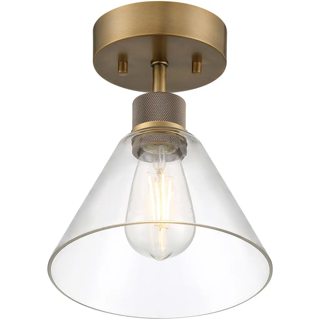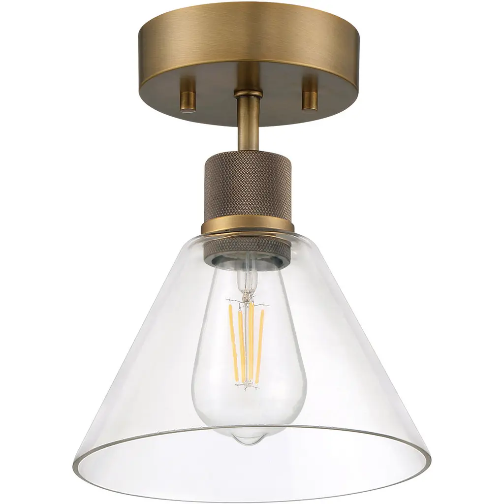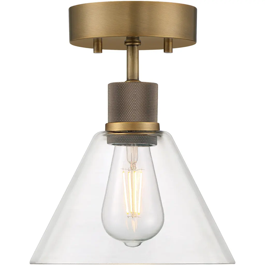 Port Nine Martini LED Semi-Flush - Antique Brushed Brass - Clear Glass - Replaceable LED